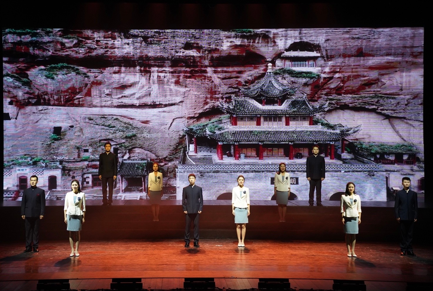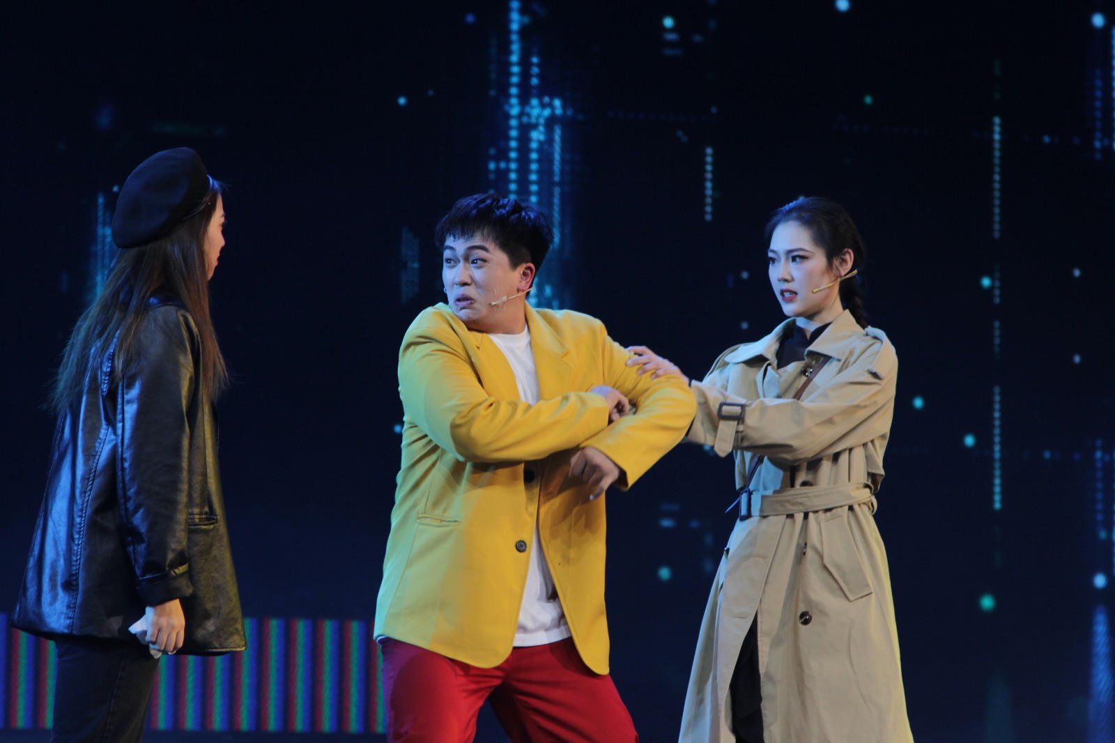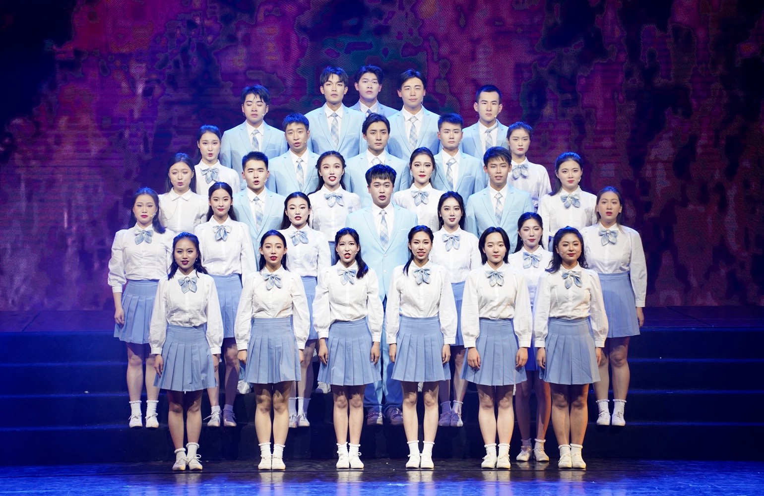 还有音乐剧片段《爱乐之城》、原创小品《壹玖乐队》、舞剧《永不消逝的电波》选段、诗朗诵《我的祖国》、歌曲《这世界那么多人》等精彩的表演赢得了阵阵掌声。