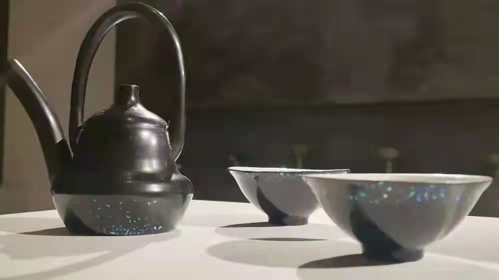 陶瓷组结合展示随圆就方瓶、凤耳瓶、陶瓷书、大漆与青瓷。石雕组用石料雕刻成砚台、小件佛像、铜镜、仿昭陵六骏等数件石雕作品,将宋代美学的独特内涵一一展现。