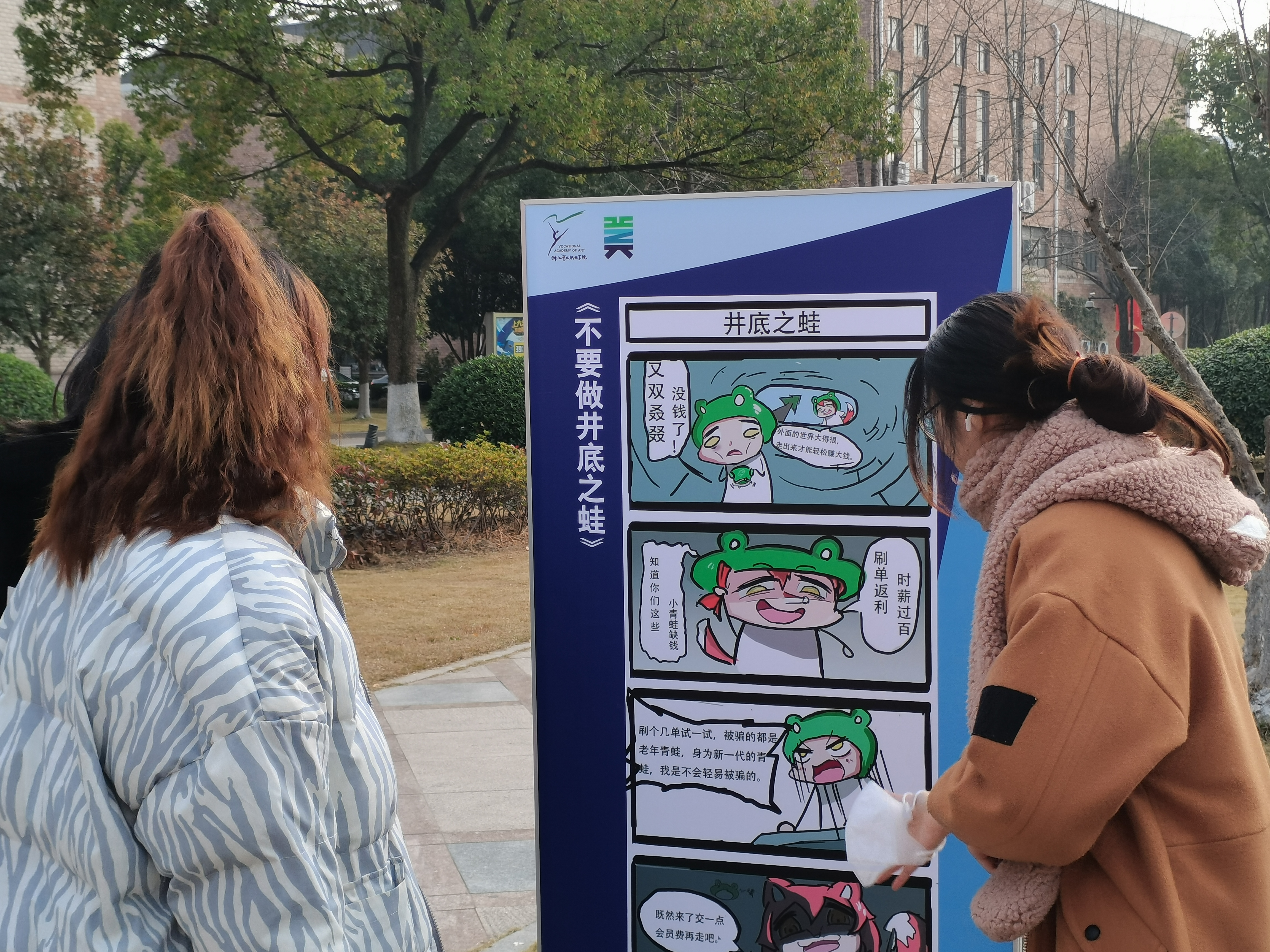 为进一步扩大反诈宣传覆盖面,增强我校师生防范电信网络诈骗的安全意识,营造全民反诈的浓厚氛围,守护师生财产安全,打造“平安浙艺”。近日,“你我同心,反诈同行”防电信诈骗警示宣传漫画展在我校举行。