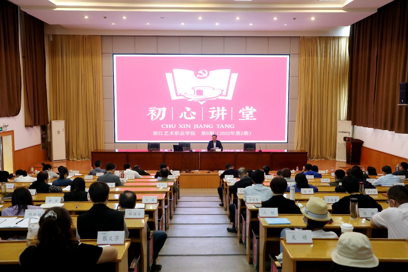 4月27日下午,浙江艺术职业学院第8期(2022年第2期)“初心讲堂”在图信中心报告厅举行。中国高等教育学会职业技术教育分会理事长、浙江金融职业学院发展咨询委员会主任周建松作专题讲座。校党委书记薛亮主持讲堂,校党委班子成员、处科级干部、教研室主任等参加学习。