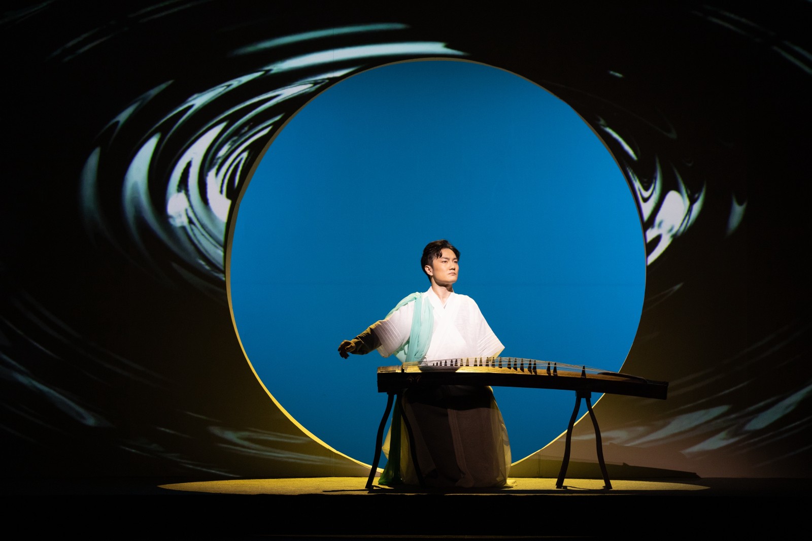 诗词吟唱、经典折子戏、朗诵、舞蹈以及民乐演奏等,《诗路风雅颂》新声度曲。特别设计的“诗魂”一角贯穿始终,恰是无数诗人美好品格的归一。舞台设计方面,长轴画卷、亭廊榭、山水影像等不同宋代元素巧妙组合,有机串联起东西南北四个表演区。观众席居中,座椅由宋体活字印刷模型转化而来,满是诗词元素,与舞台深度融合,与演员同在一个意境。中国古代四大发明的三项出现在宋朝,其中与人类文化传承最紧密的当属活字印刷。宋体是流传至今的文化符号,是中华文明最好的传承和演化之一。歌、舞、咏、乐、书、诗、词与巧思匠心的舞美设计跨界融合,今人演绎古典美,尽显精致典雅隽永,独具韵味。