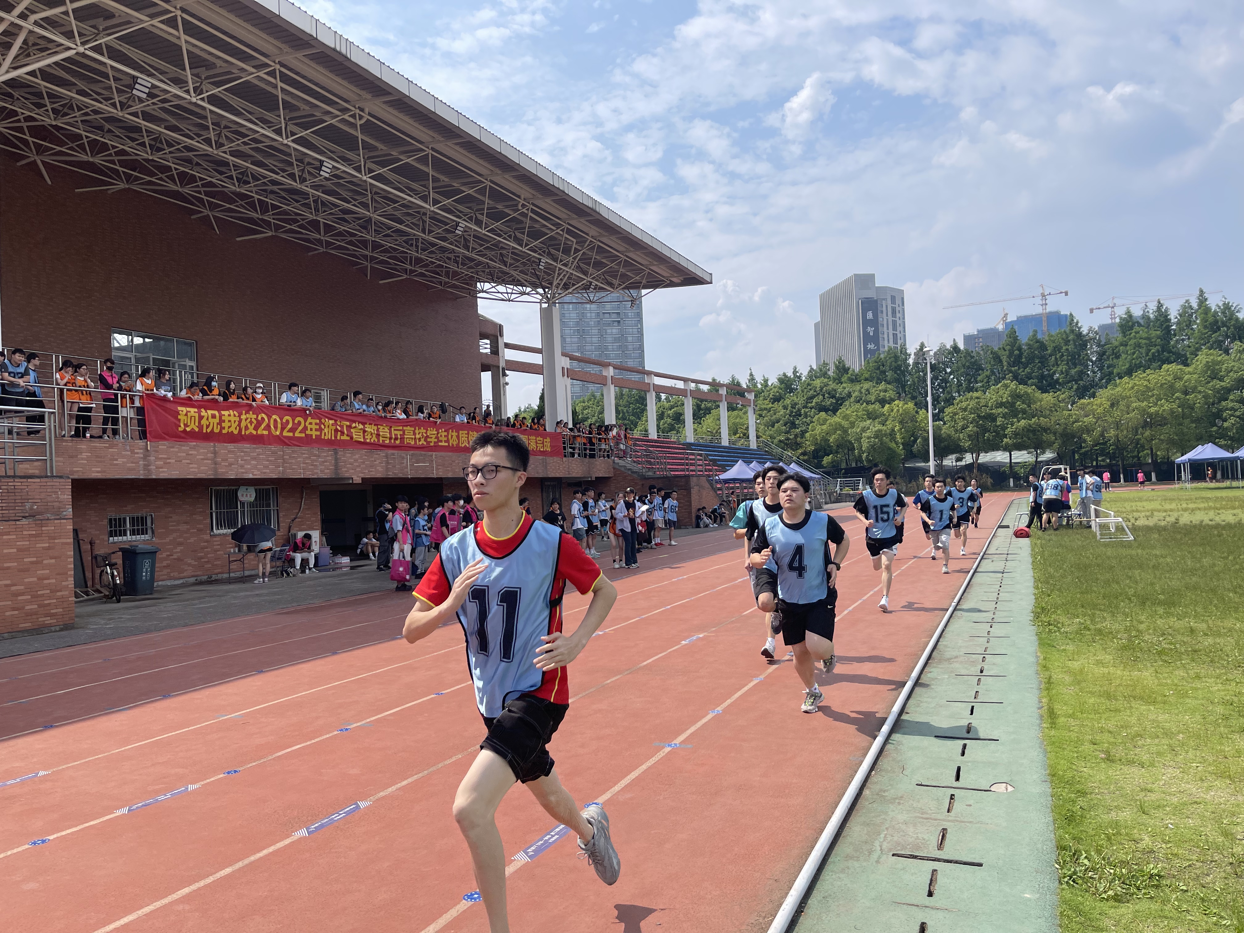 当天,校党委委员、副校长支涛,各二级学院领导及辅导员们也在一旁为学生鼓劲加油。按照测试要求,学生依次完成了坐位体前屈、立定跳远、男子引体向上、女子仰卧起坐、50米跑、女子800米跑和男子1000米跑等项目的测试。抽测过程中,学生精神饱满,态度端正,严肃对待每一项测试;现场有条不紊,医疗保障措施周全,志愿者服务有序。在同学、老师和志愿者们的配合下,所有抽测项目圆满完成。本次抽测的组织工作和同学们的现场表现获得抽测组专家的一致好评。
