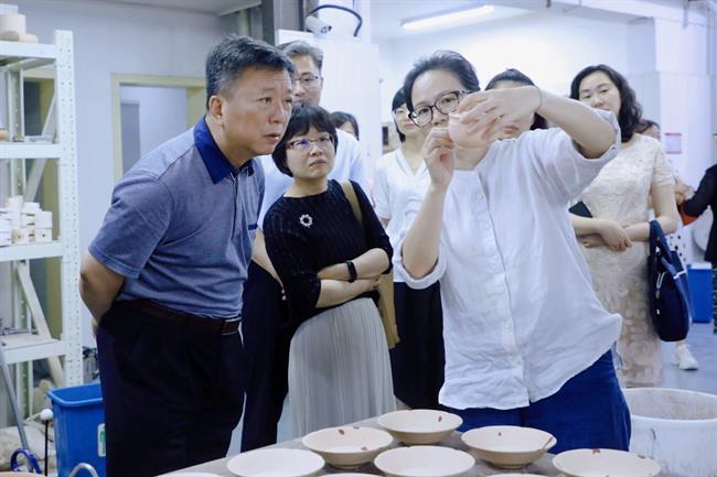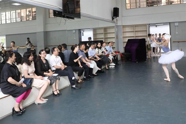 当天,陶诚一行走进浙艺课堂,观看浙江省高水平专业群舞蹈表演专业、国家“双高”专业群戏曲表演专业、戏剧表演(音乐剧表演3+4)中本一体化班等课堂教学情况,参观了青瓷烧造、文物修复、字画装裱、文物鉴定等全国非遗传承人群研修研习培训基地,在浙江实验艺术剧场观看了学校的教学汇报演出,并就有关教学及实践情况进行了交流。