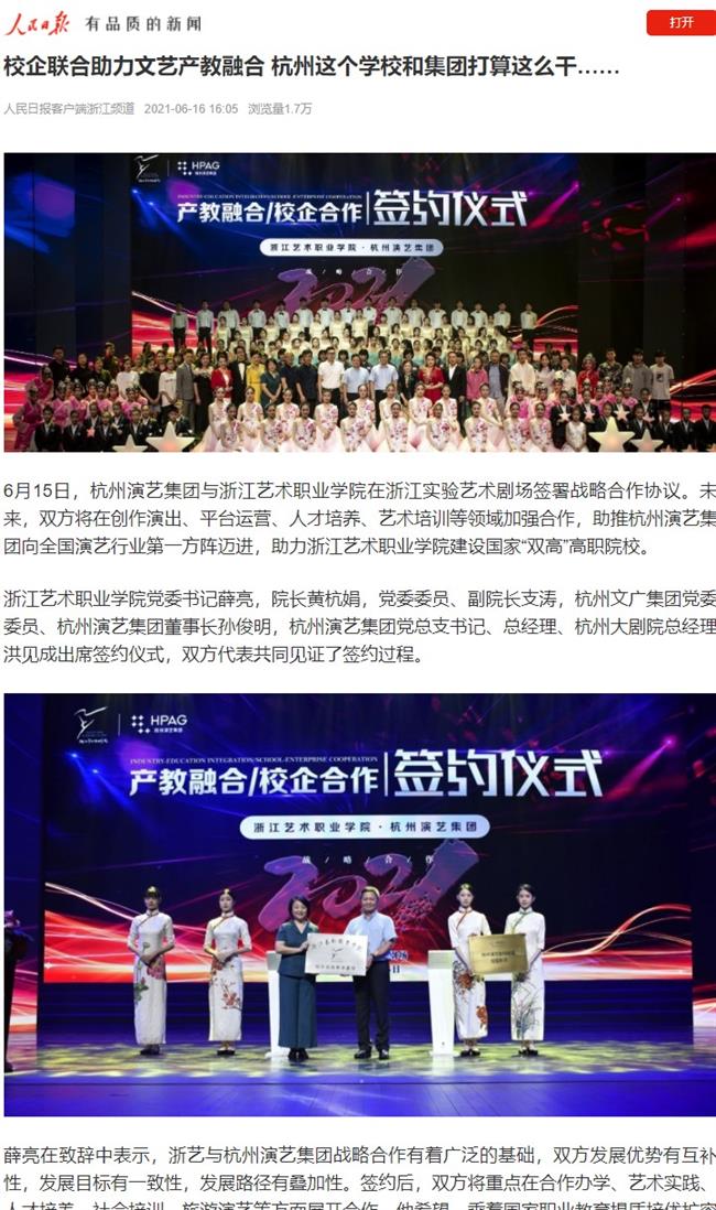 学校活动、人物报道、演出视频等在人民日报、新华社、央视新闻、光明日报、中国教育报、中国青年报、中国文化报、学习强国、浙江日报等国家级、省市级媒体平台发表百余篇,受到广泛好评。