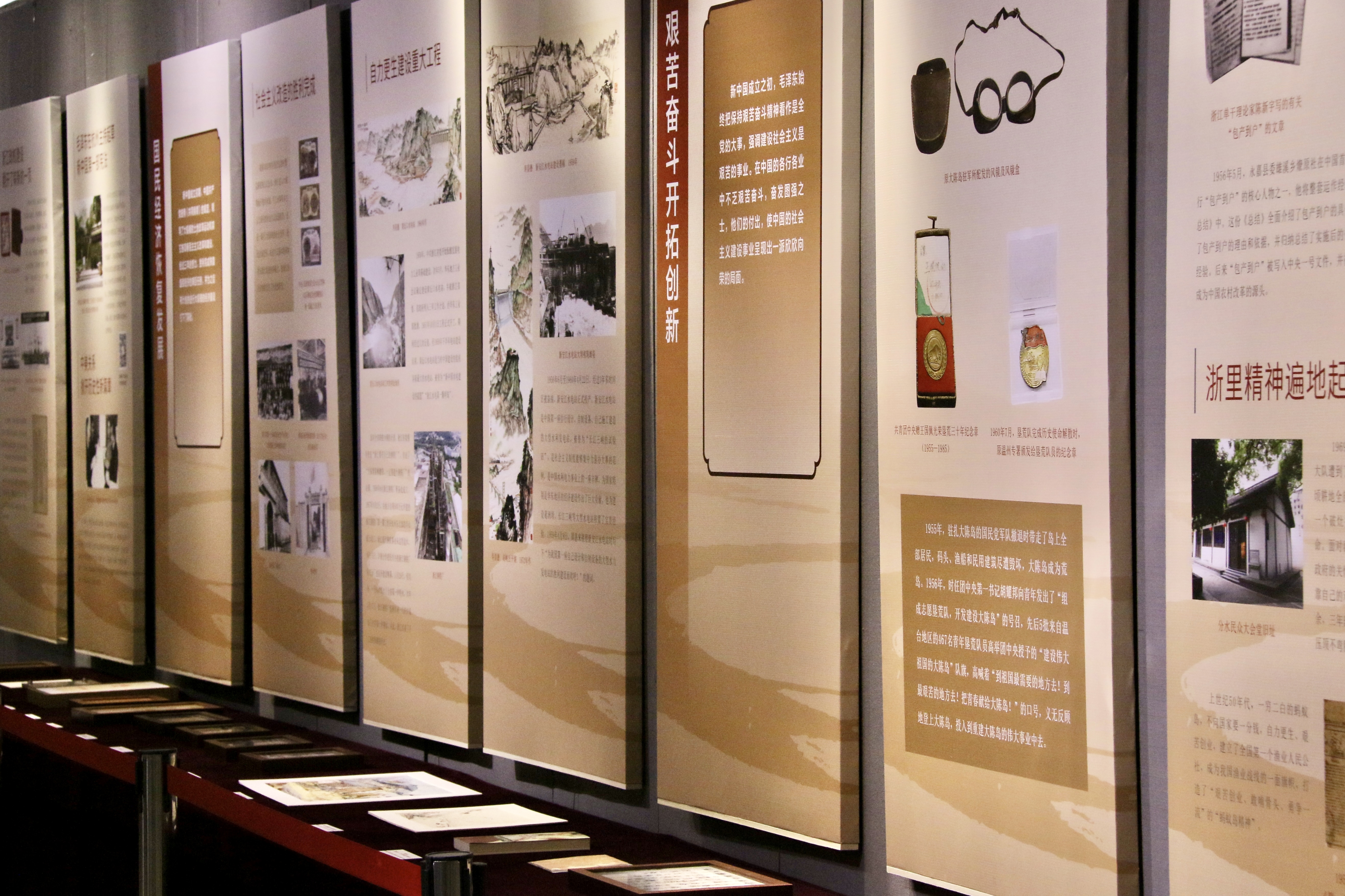 展览分为四个部分:“革命火种在“浙”里燃起(1921—1949)、新中国在“浙”里见证(1949—1978)、改革开放“浙”里先行(1978—2002)、新征程“浙”里谱写新篇章(2002至今)”。从1921年中国共产党在嘉兴南湖诞生,到“四千精神”开启浙江改革开放之门,再到“八八战略”“绿水青山就是金山银山”等重要决策、重要思想论述的产生和发展过程。突出展现浙江作为中国革命红船起航地、改革开放先行地、习近平新时代中国特色社会主义思想重要萌发地在百年党史中的重要地位。