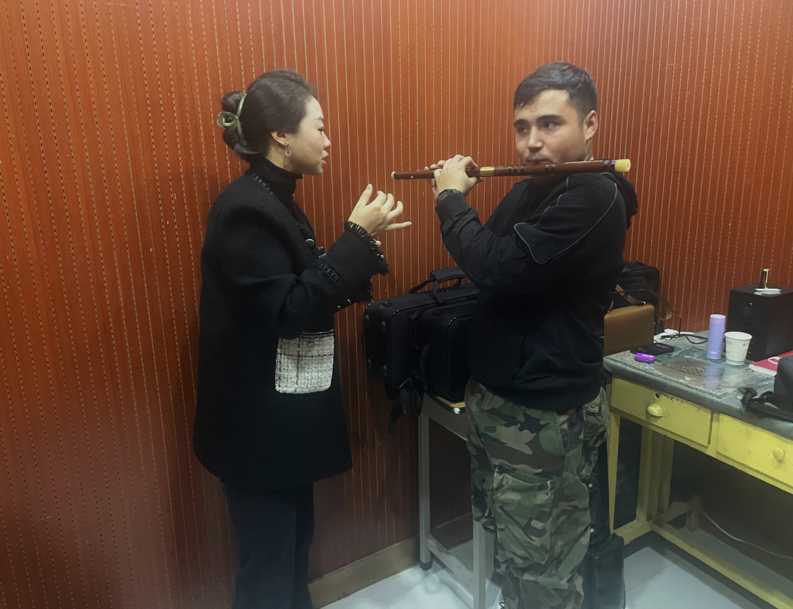 浙艺戏曲学院教师耿绿洁此前参与了京剧《班超》的创排,与阿职院教师们结下深厚友谊,这是双方的第二次合作,她既为“再相聚”感觉开心,更被当地教师的好学精神感动。阿职院人文艺术学院声乐教师骆亚丽为了把耿绿洁教她的昆曲唱段的小腔唱好,走路也唱,吃饭也唱,走哪唱哪。“整座教学楼几乎都飘荡着她的歌声,曲调优美,吸引了很多男学员也跟在她身旁哼唱,成为一道独特的校园风景线。”耿绿洁说。