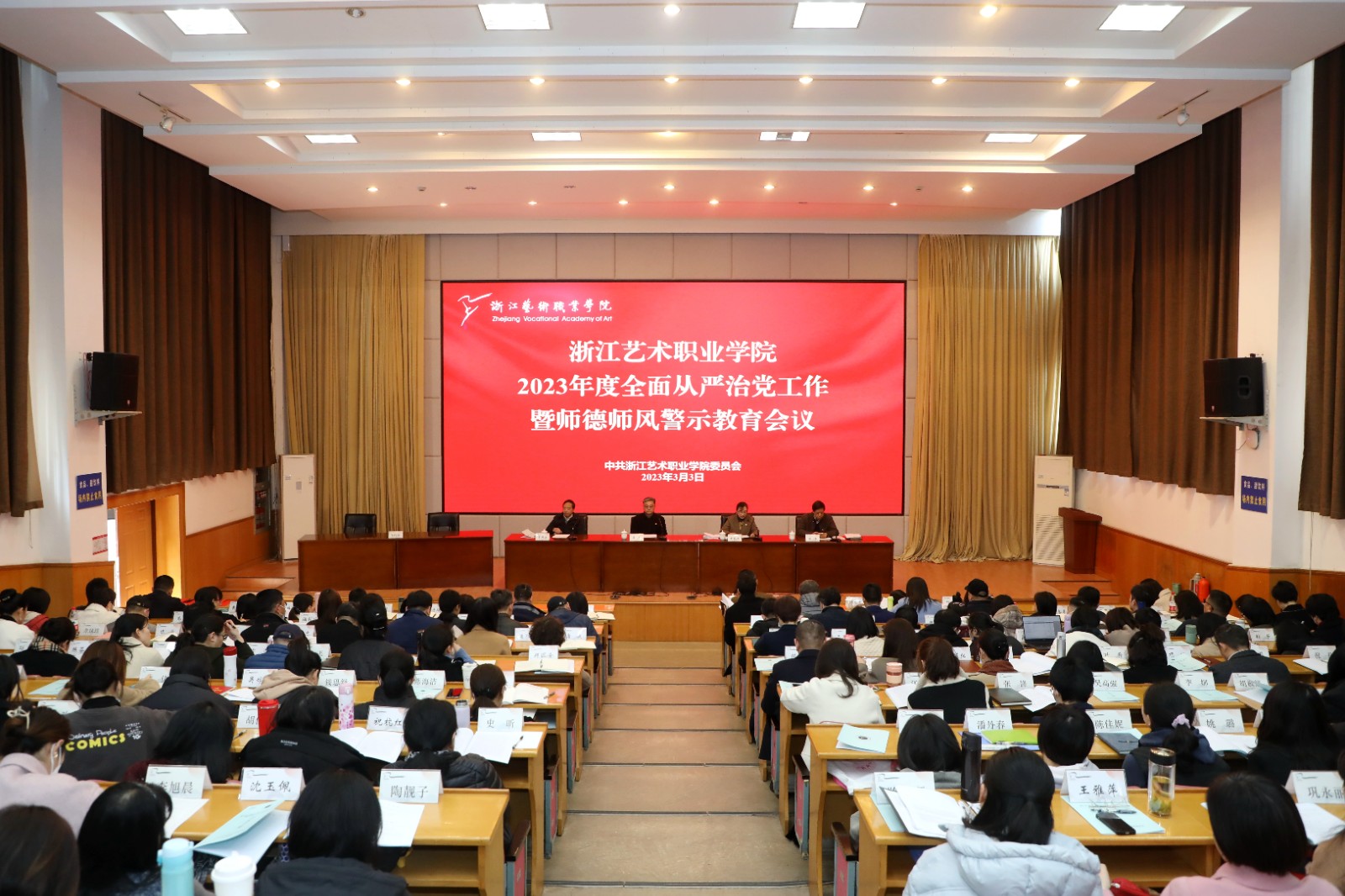 3月3日,浙江艺术职业学院召开2023年全面从严治党工作暨师德师风警示教育会议,学习贯彻二十届中央纪委二次全会,省纪委十五届二次全会和教育系统全面从严治党工作会议精神,研究部署学校全面从严治党工作,为推动学校“十四五”高质量发展提供更加坚实的政治保障。