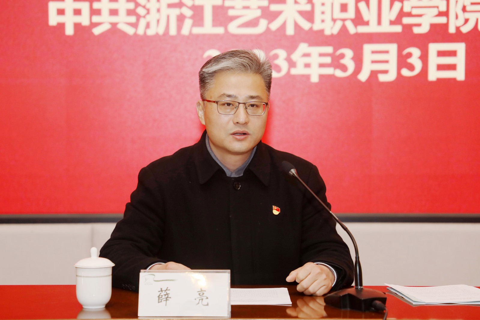 校党委书记薛亮出席会议并讲话,党委副书记、院长黄杭娟主持会议,党委副书记夏开堂作师德师风警示教育,校党委委员、纪委书记徐芳作工作报告。