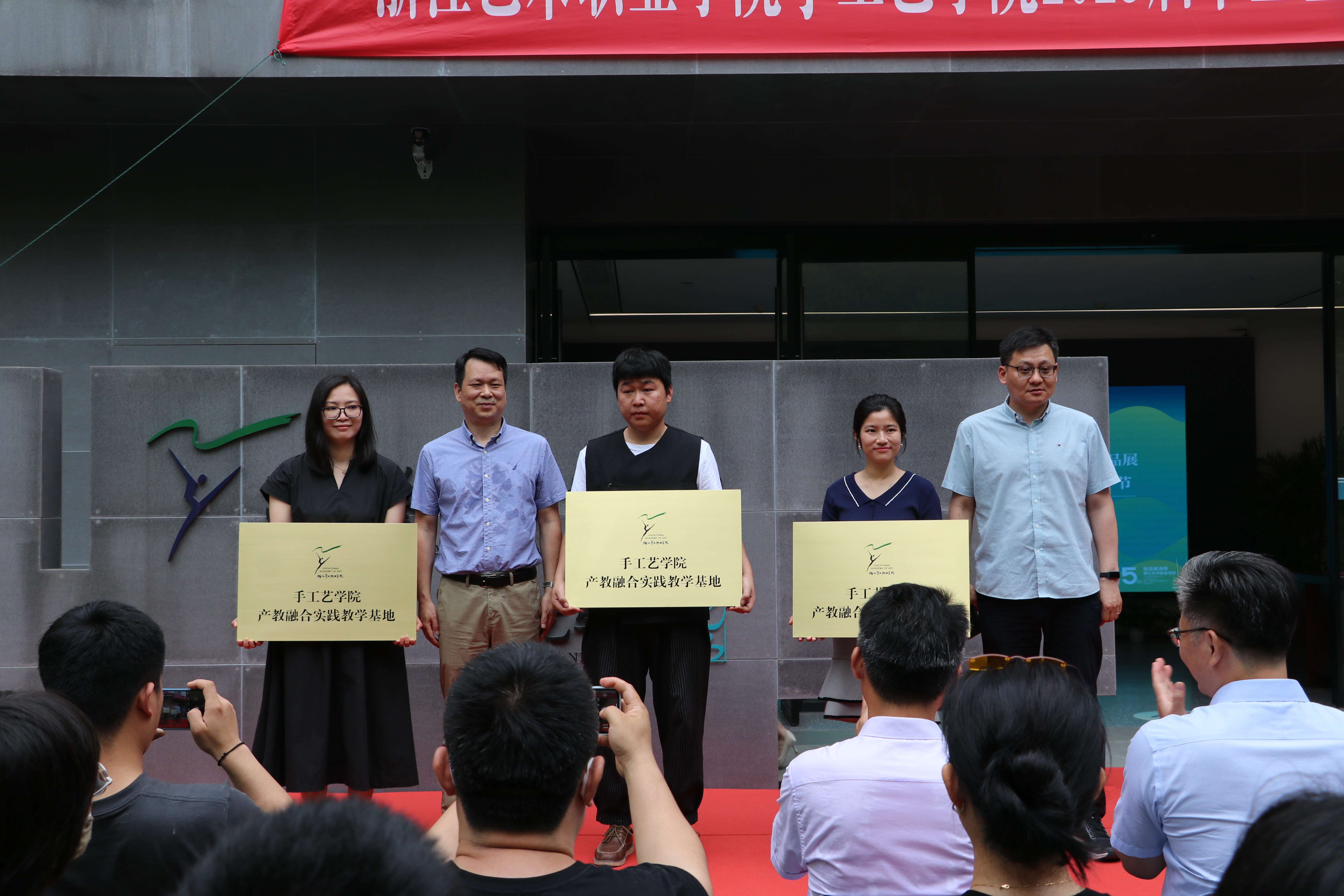 近年来,手工艺学院深入开展产教融合系列举措,探索“融合、协作、共赢”的专业发展路径,开幕式上,学校为浙江励行文化科技有限公司、浙江省创意设计协会、江苏华艺时装集团股份有限公司等单位颁发“产教融合实践教学基地”标牌。