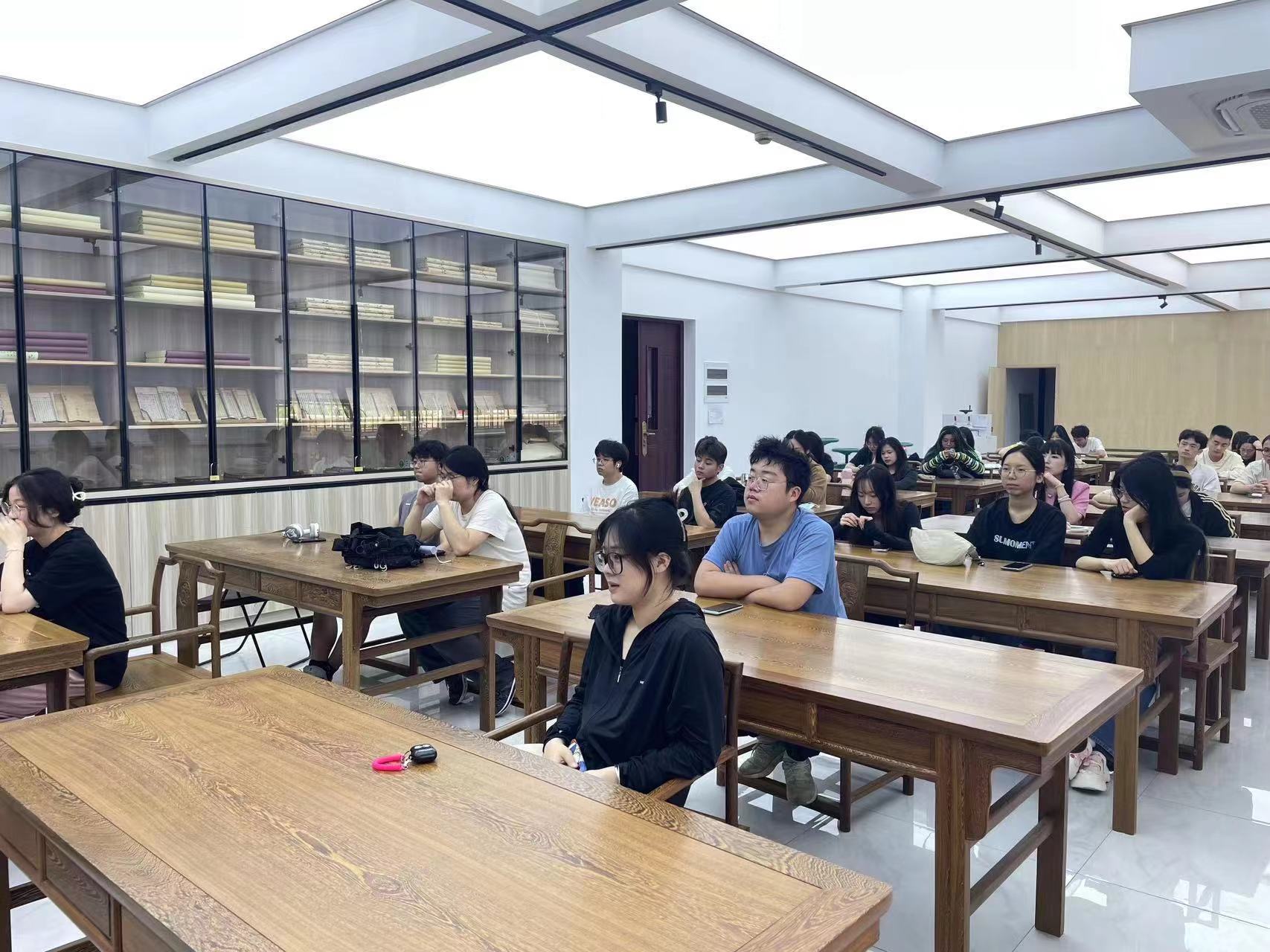 王钏巧详细介绍了瑞安木活字印刷术发展历史,瑞安木活字印刷术的流传维系于修编家谱族谱的传统,如今木活字印刷在生活中的应用与文创产品的推出都表明了传统技艺未来的发展将越来越好,但非物质文化遗产的保护与传承仍需要一代又一代青年人的奋斗。这份诚心满满的致辞,凝聚着他对传统技艺的热爱与敬畏,也充满了对同学们深切的期待与希望。