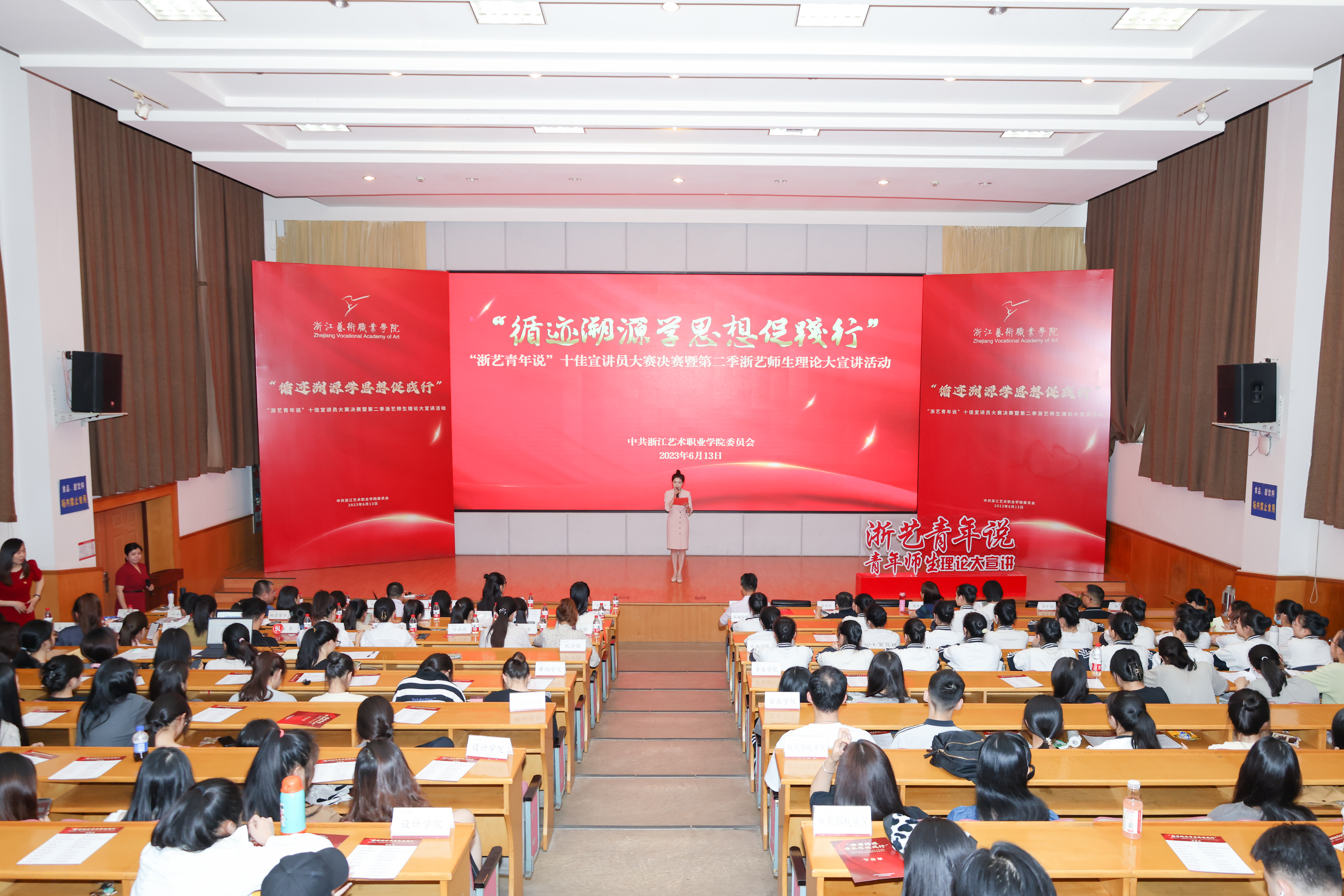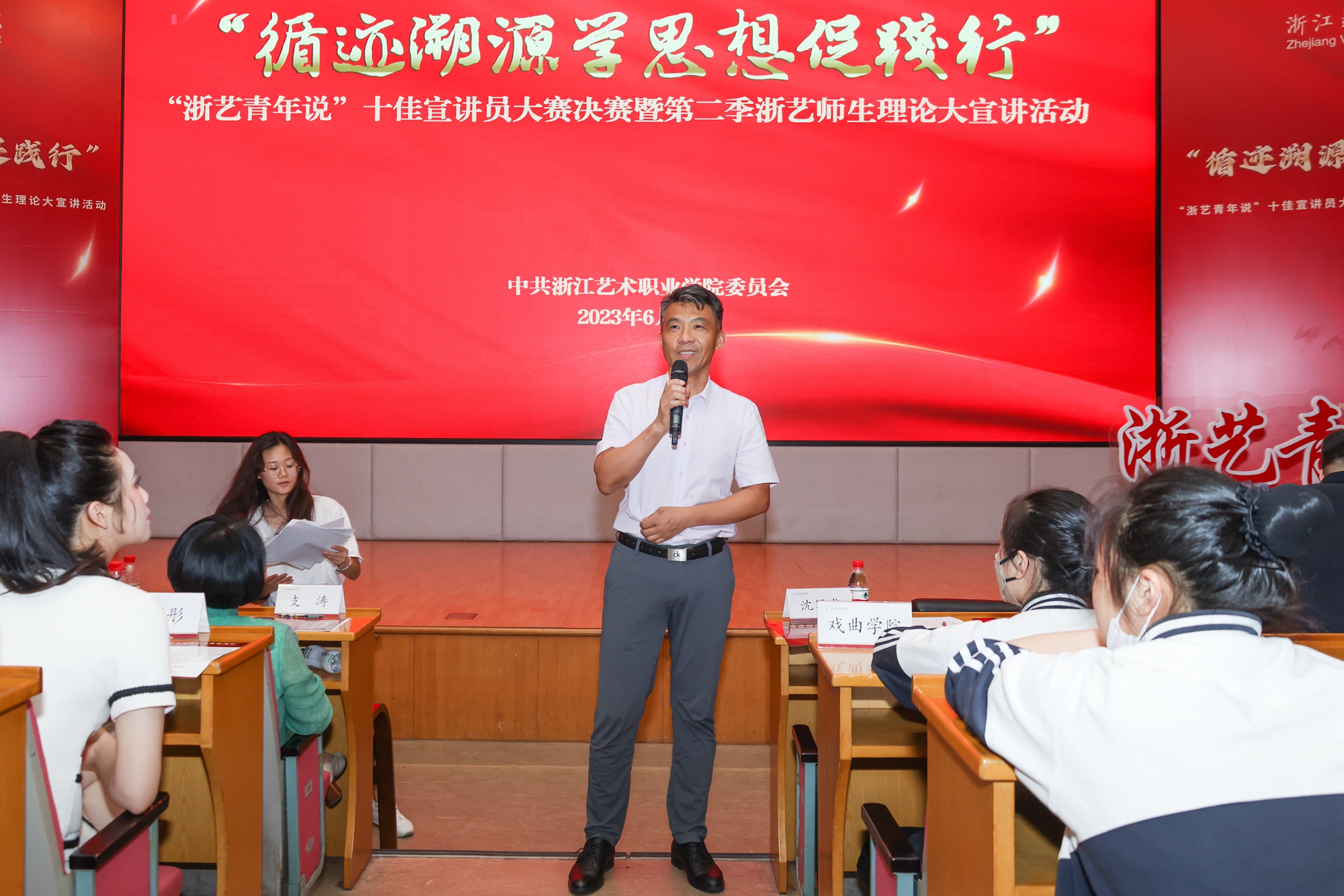 本次宣讲员比赛活动是浙江艺术职业学院学习贯彻习近平新时代中国特色社会主义思想主题教育的一项重要活动,通过青年师生主题宣讲,引导全校师生深入学习贯彻习近平新时代中国特色社会主义思想和党的二十大精神,从中汲取进取的智慧和力量,自觉接受思想淬炼和精神洗礼,在不断强化理论武装的过程中筑牢信仰之基,补足精神之钙,把稳思想之舵。