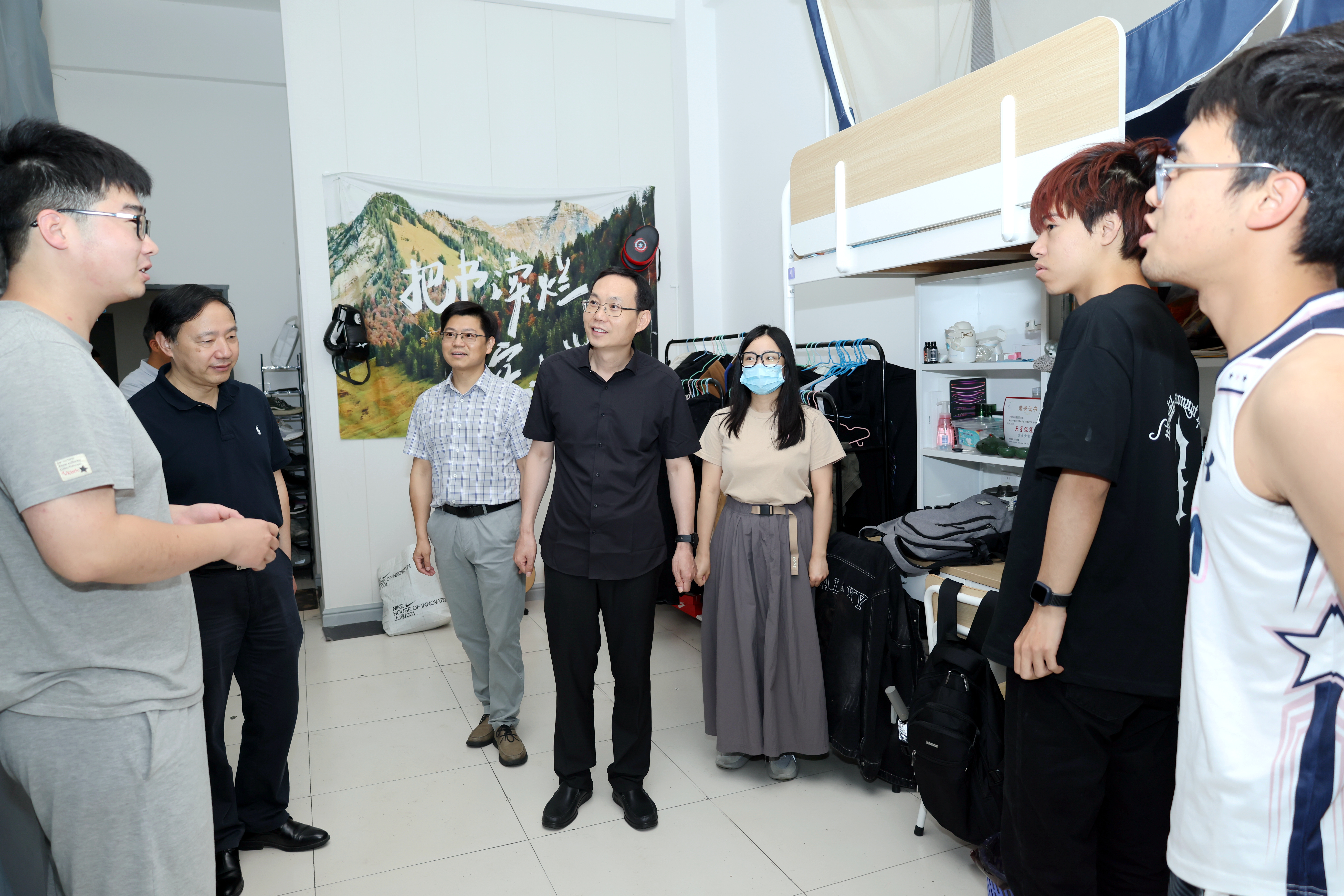 “你们辛苦了!”每到一处,施俊天都与教职工热情握手,询问大家工作情况,勉励大家继续奋勇争先、再创佳绩。他鼓励广大教职员工立足本职,履职尽责,扎实工作,以开拓进取的精神投入到学校工作中,踔厉奋发,笃行不怠,为进一步提升学校办学水平和人才培养质量做出新的贡献。