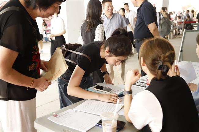 报到现场,验证录取通知书、户口迁移、领取报到材料、购买床上用品、办理家校通……新生们按照指引完成一项项报到手续。