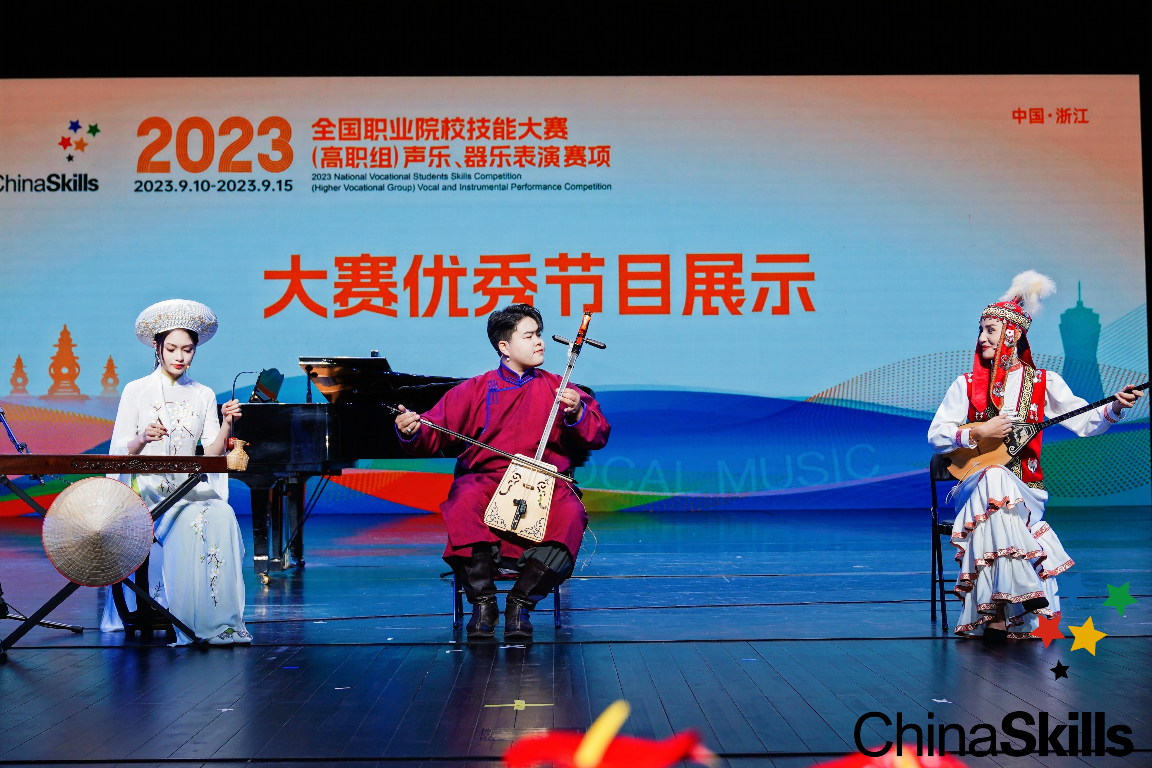 9月10日至15日,2023年全国职业院校技能大赛(高职组)声乐、器乐表演赛项在浙江艺术职业学院展开精彩角逐。来自29个省(市、自治区)的职业院校的53支参赛队伍,共159名选手在浙艺同台竞技,展示青春风采。