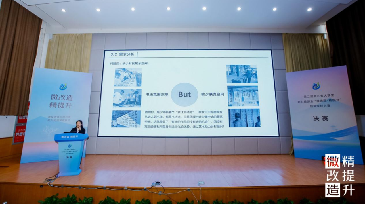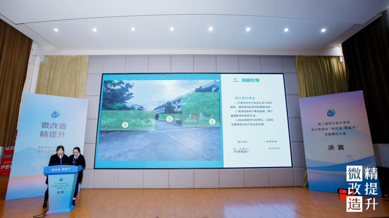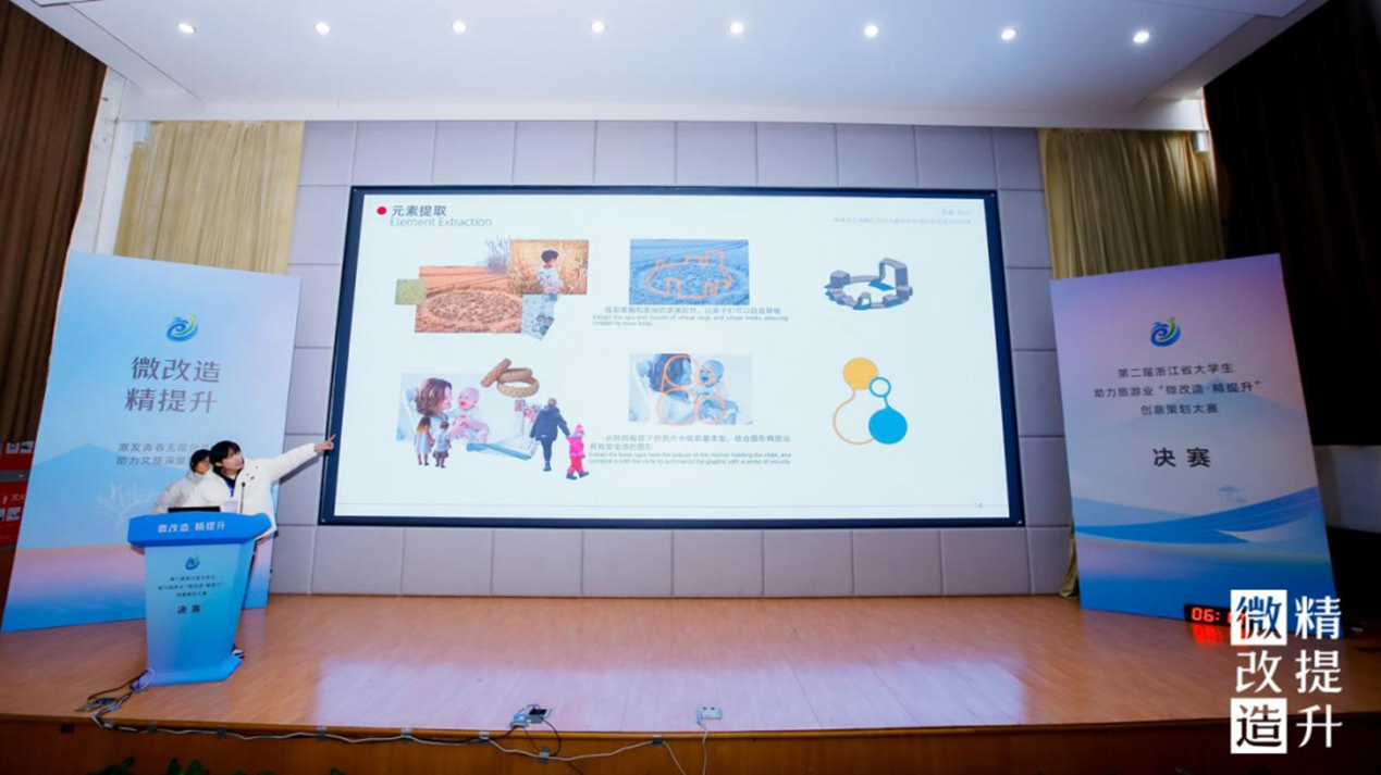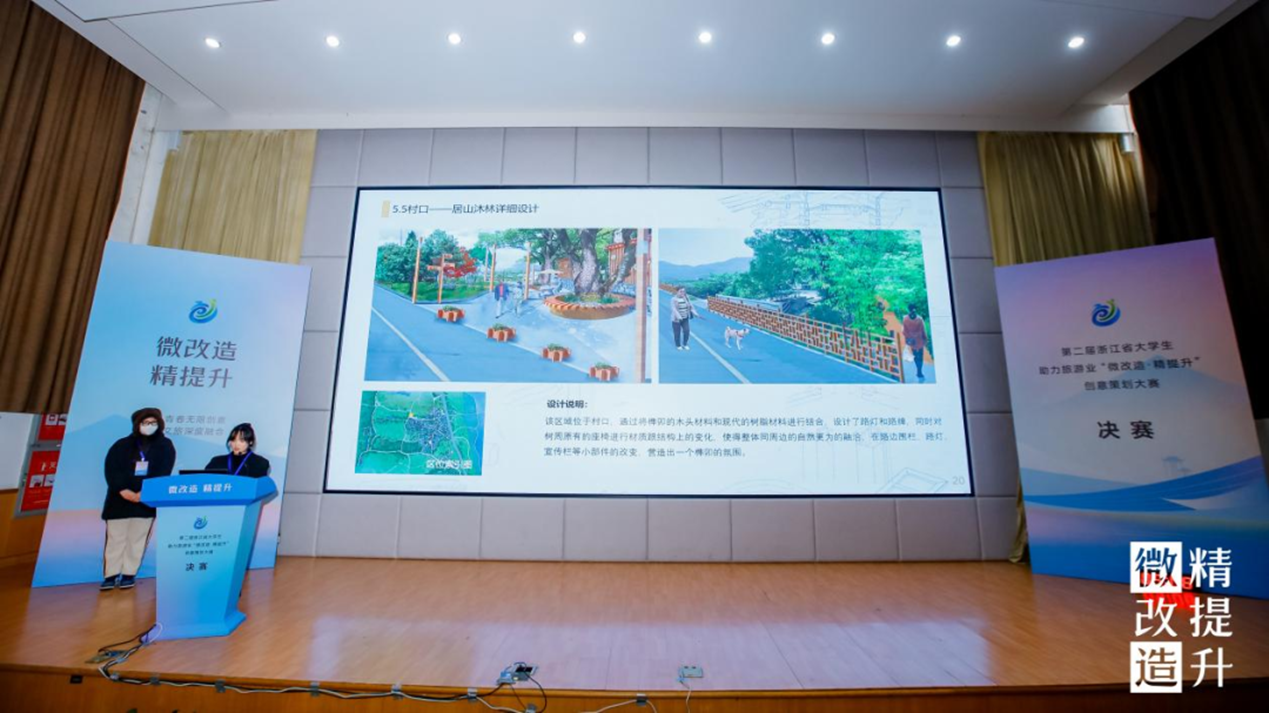 作为浙江省大学生助力旅游业“微改造 精提升”创意设计大赛的承办单位,我校探索以赛事办实事,以项目任务驱动教学,使教学和社会需求进一步接轨,提升办学质量,共同推动旅游业高质量发展,奏响美美与共的乡村乐曲,绘就共同富裕的美好画卷。