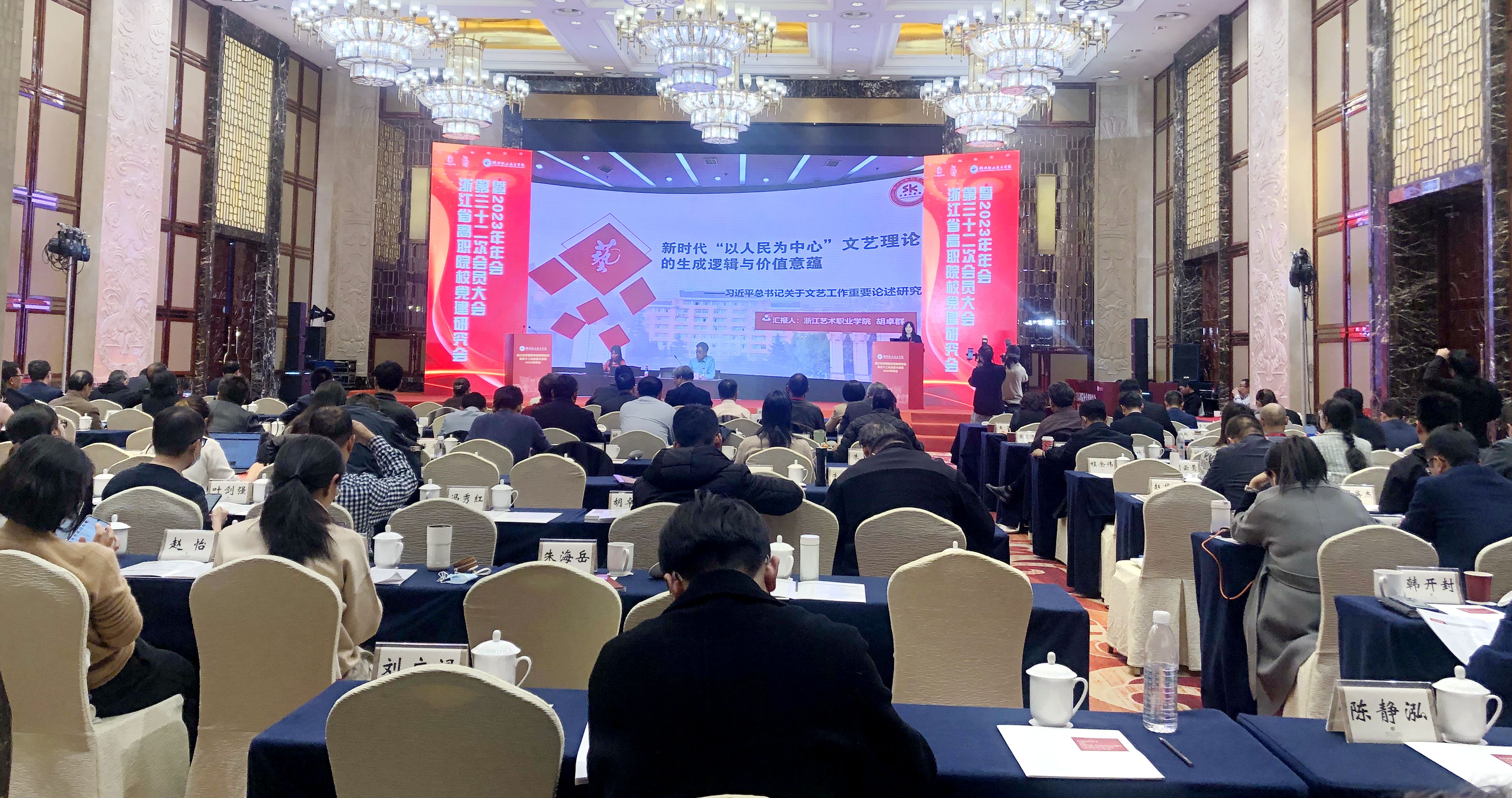 11月30日至12月2日,浙江省高职党建研究会第三十二次会员代表大会暨2023年年会在湖州举行。本次年会以“学习贯彻习近平新时代中国特色社会主义思想,推动高职教育高质量发展”为主题,中国高等教育学会第六届理事会会长瞿振元,湖州市委常委、副市长阮叶萍,省教育厅组织处处长陈钦林,全国高职高专党委书记论坛主任委员会主任委员、新疆工程学院党委书记李玉鸿,教育部职业教育发展中心研究员赵伟,中国教育学会教育新闻分会常务副主任委员汪大勇,中国教育在线副总裁赵欣,省高职院校党建研究会会长、浙江金融职业学院原党委书记周建松,来自北京、新疆、贵州和省内各高职院校党委书记、党委副书记、组织部部长、宣传部部长、思政教育工作者等200余名代表参加会议。研究会常务理事、我校党委副书记夏开堂,研究会理事、校党委委员、宣传部部长、统战部部长马向东和我校获奖代表参会。