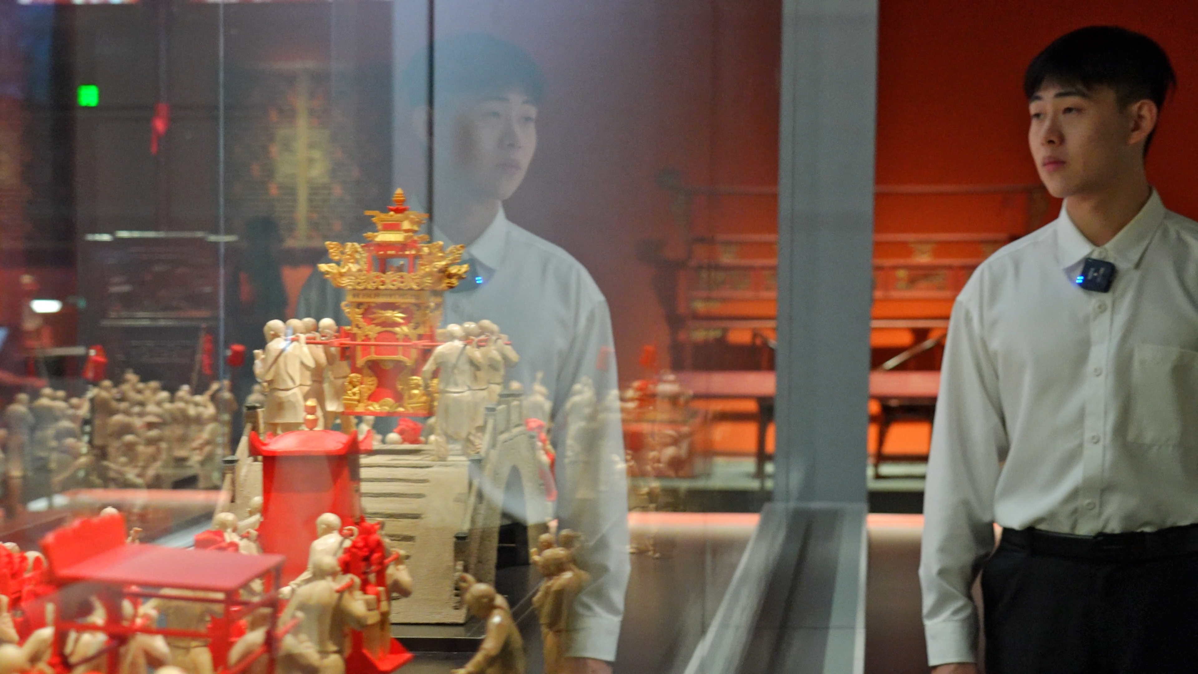 公开课展示团队成员由刘兴蓉(22影视编导班)、孙仁东(22戏剧影视表演1班)、童煜鑫(22戏剧影视表演1班)、王艾嘉(22戏剧影视表演1班)、王博凯(22影视多媒体2班)、徐伟琦(22影视多媒体2班)六位同学组成,在马克思主义学院陈丽丽、胡芊、胡卓群三位指导教师的精心指导下,选取《思想道德与法治》第三章“继承优良传统 弘扬中国精神”中第二节“做新时代的忠诚爱国者”进行内容架构,通过走进浙江省博物馆(之江馆区),寻找四件“镇馆之宝”——战国越王者旨於睗剑、元黄公望富春山居图卷、新石器时代良渚玉琮王、朱金木雕宁波花轿(万工轿)——实施了一堂“博物馆里的思政课”,用文物故事解码新时代的爱国主义,增强文化自信,践行爱国誓言。经过师生团队共同努力,作品突出重围,斩获佳绩。