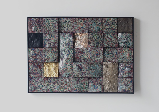 这件作品从视觉语言上讲是我对漆立体与平面绘画之间的一种尝试,宏观角度看起伏不平的树皮肌理更像是祖国重峦叠嶂的山丘,用56种色漆通过不断的堆叠覆盖,最后通过打磨抛光, 色漆围绕着山峰一层层的显现形成流水,波纹以及不规则的意象图形,更像是每个民族在祖国的怀抱里滋养着,川流不息、延绵不断,同时也表达我对祖国山河的宏大 、包容、多元的一种敬畏和赞美!从材料层面讲也是对传统漆工艺的一种新形式表现!