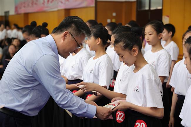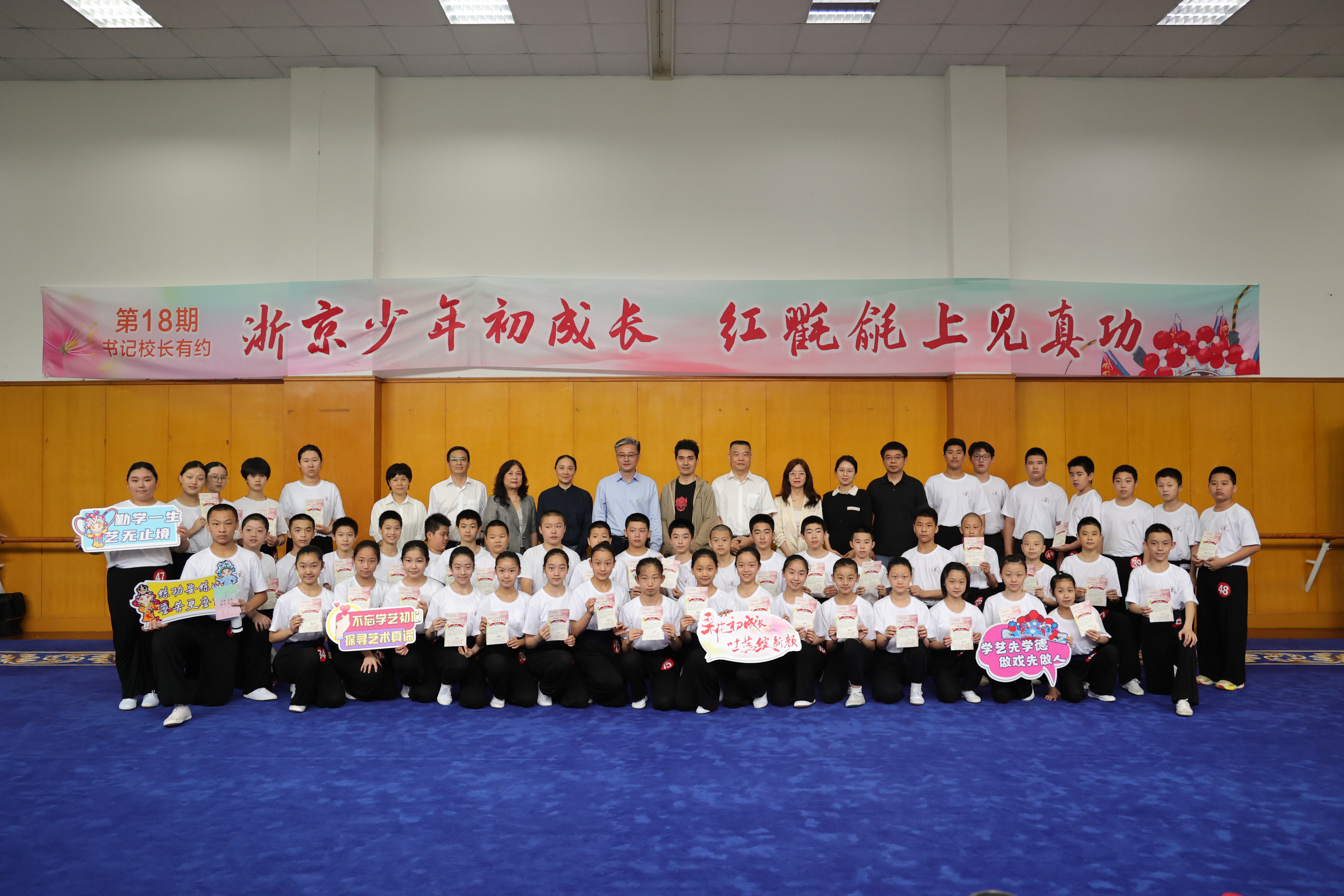 活动最后,行业嘉宾、校团领导共同为京剧班的同学们送上书记校长有约纪念卡。