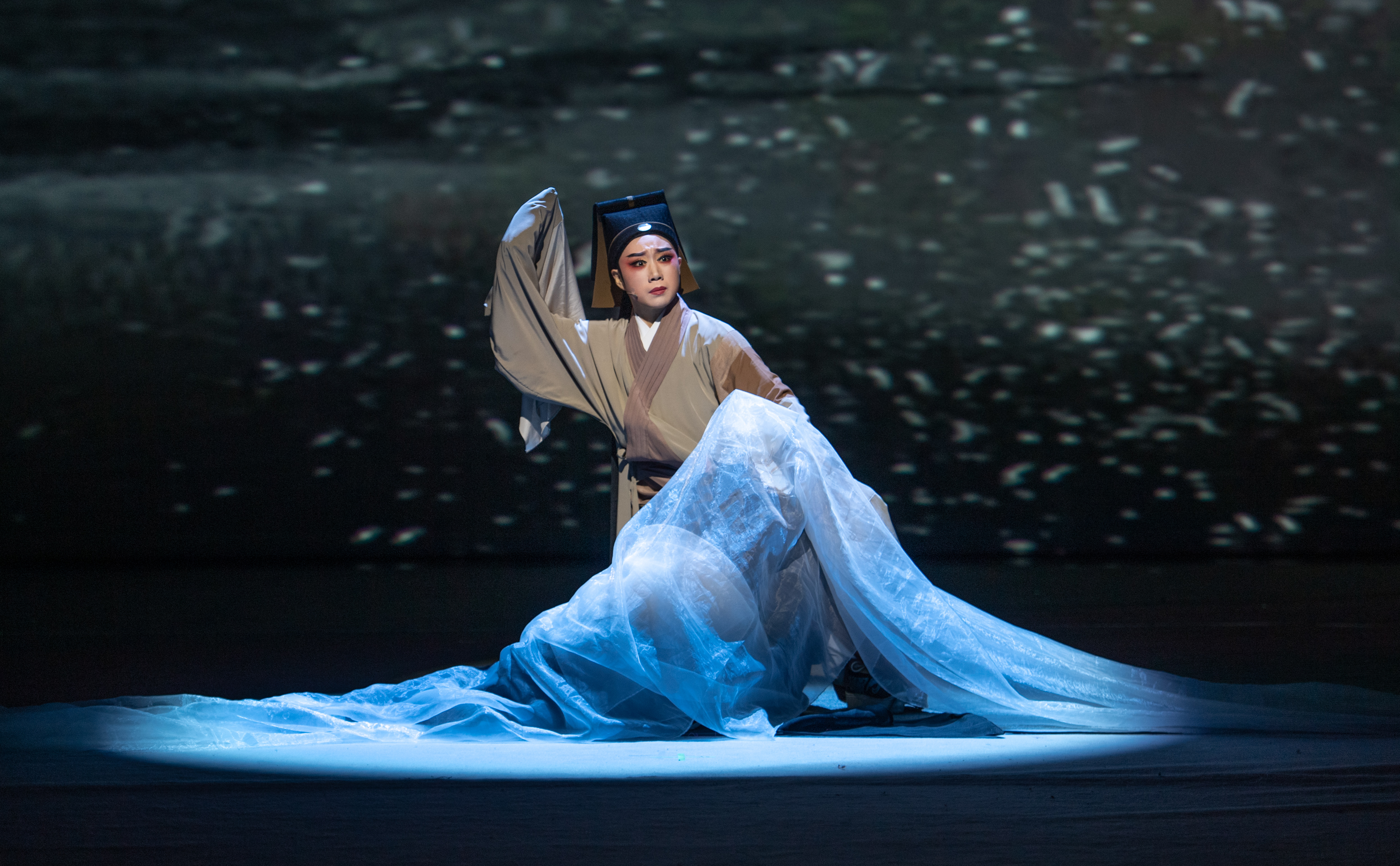 生、旦学员以《牡丹亭·惊梦》《牡丹亭·游园》开场,展示此次培训京、昆、晋、川等多元技艺课堂,展示长绸、褶子功、趟马、甩发功、长水袖等基本技巧,以四功五法展现戏曲艺术的精妙绝技。