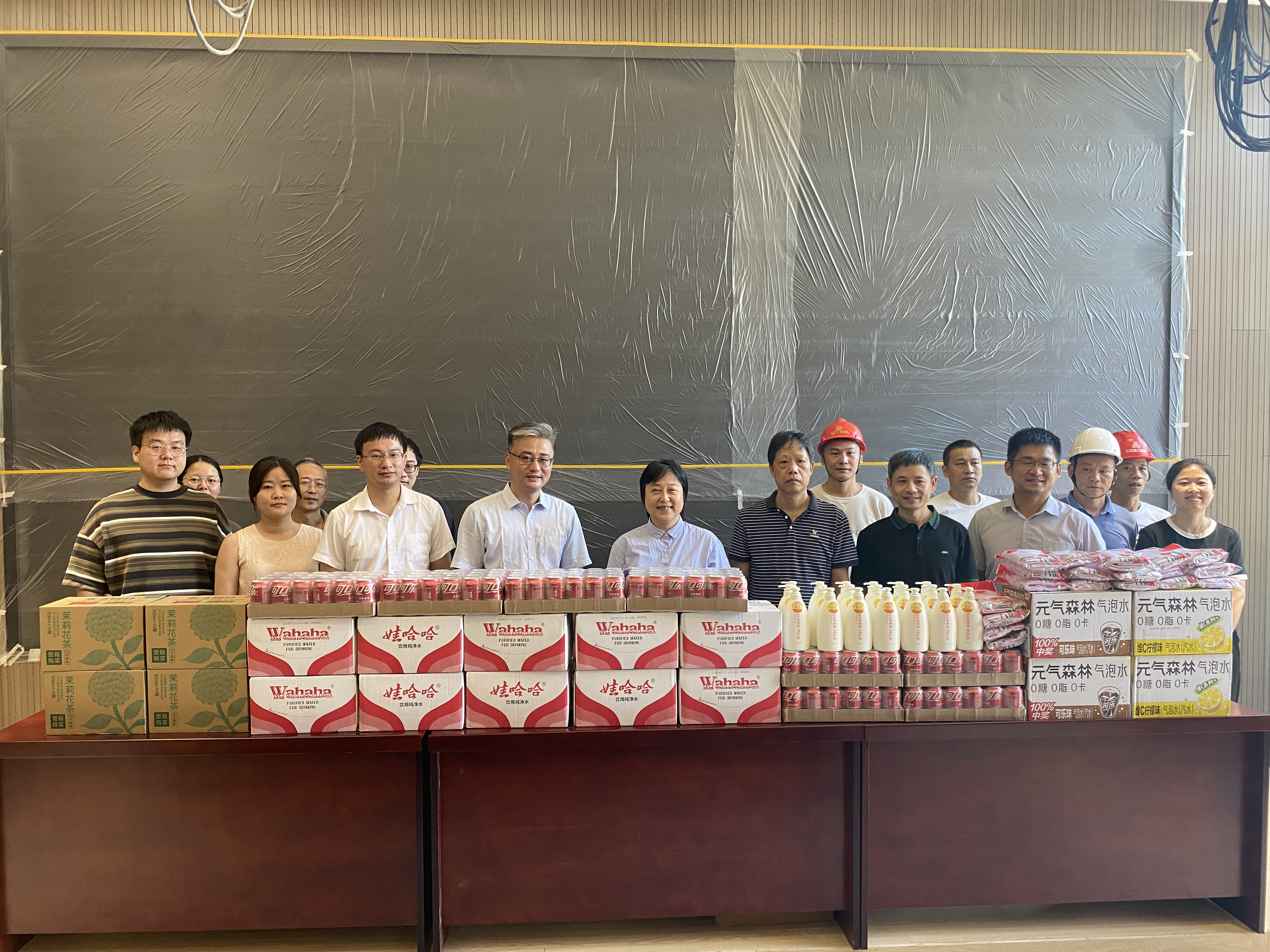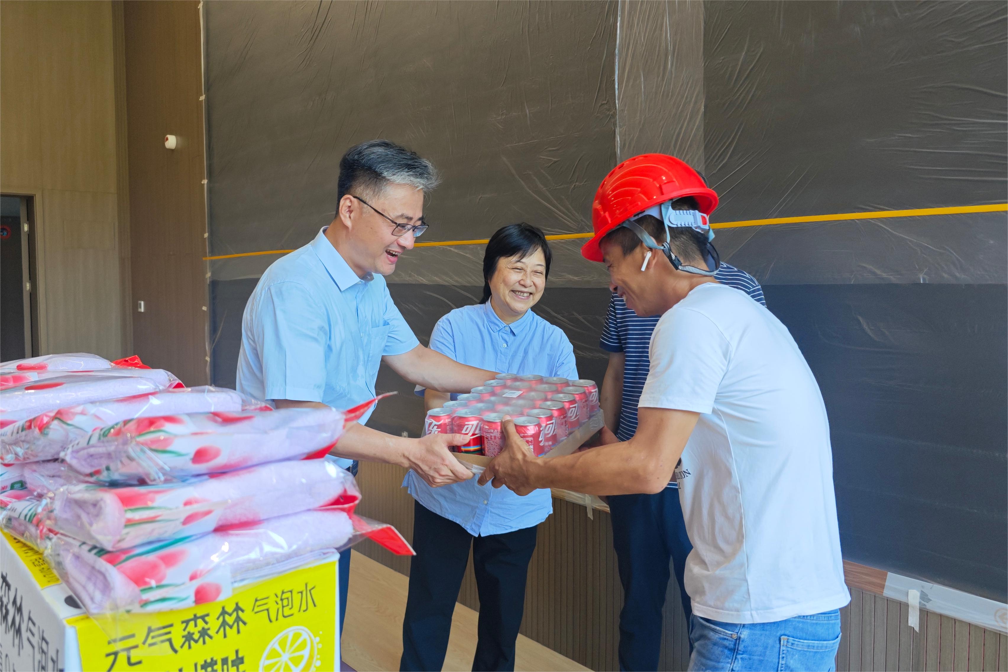徐晓副书记一行分别视察了新教学楼建设、8号教学楼硬件改建、田径场看台改建等施工现场,慰问了在酷暑下坚守的工作人员,对大家的辛勤付出予以肯定和赞扬,感谢他们在高温下为提升学校硬件与教学质量做出的重要贡献,并为工作人员送上了一批防暑降温物品,叮嘱大家在做好工作的同时做好自我防护,确保身体健康和生命安全。