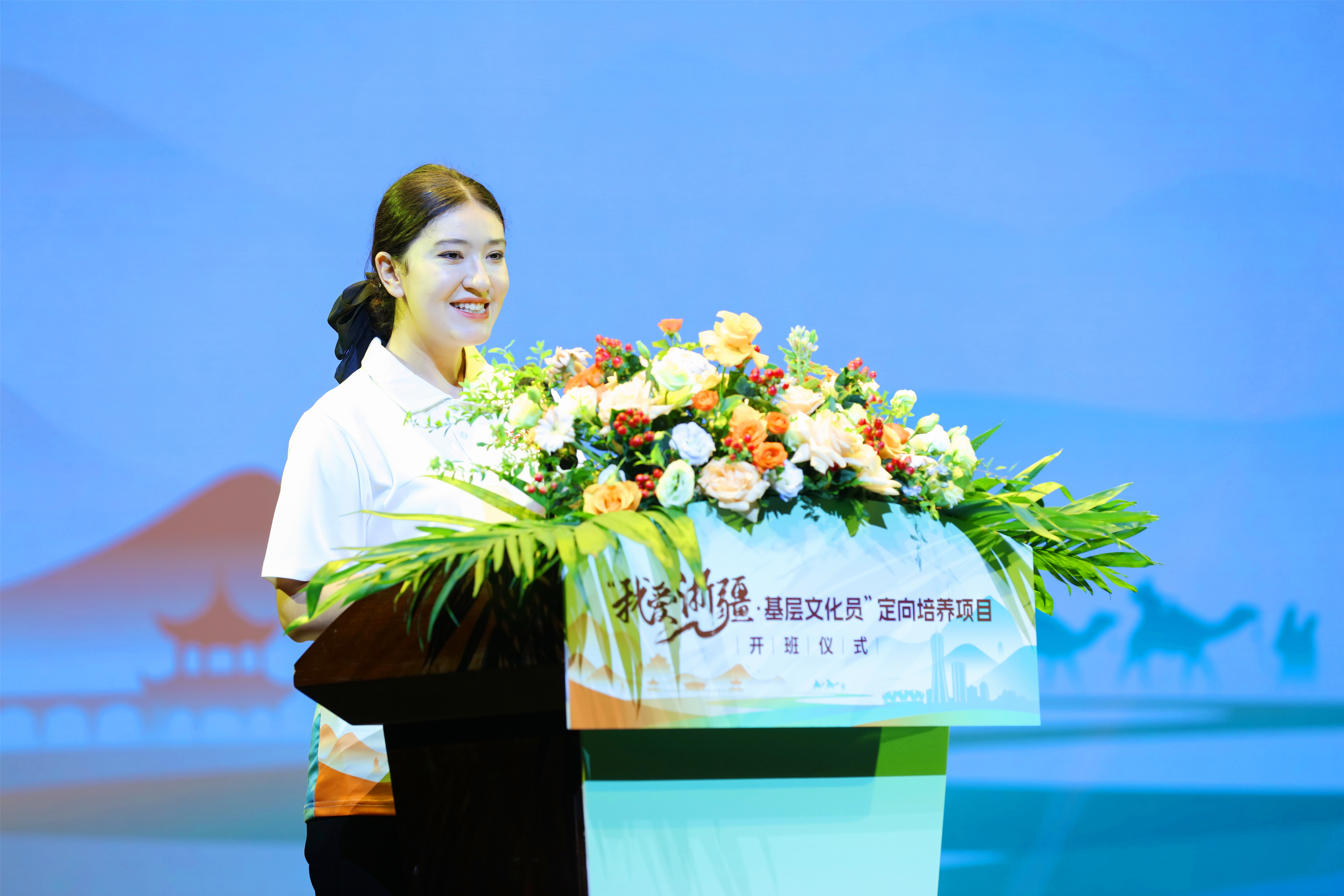 在仪式现场,基层文化员学员代表帕提麦·于苏普激动地表达了他们对项目的感激之情,并承诺时刻铭记自己的责任使命,为阿克苏的基层文化建设和文化润疆工作贡献自己的力量。同时,作为定向文化员班的舞蹈专任教师,浙江艺术职业学院教师吕季鸿也表达了对新疆的深厚情感和对教育事业的热爱。