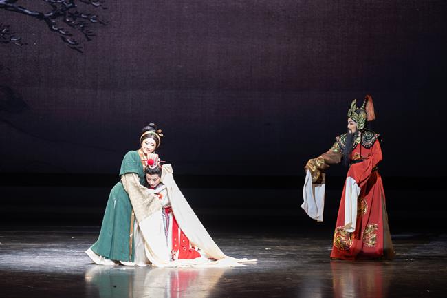 随着大幕缓缓拉开,伴唱响起:“牡丹竞放笑春风,喜满华堂寿烛红。”同学们以清婉丽音、细腻表演,将这部经典剧目重新演绎得淋漓尽致。舞台上,她们或喜或悲,或怒或嗔,每一个动作、每一个眼神都充满了戏剧张力,让观众仿佛穿越时空,回到了那个充满爱恨情仇的时代。