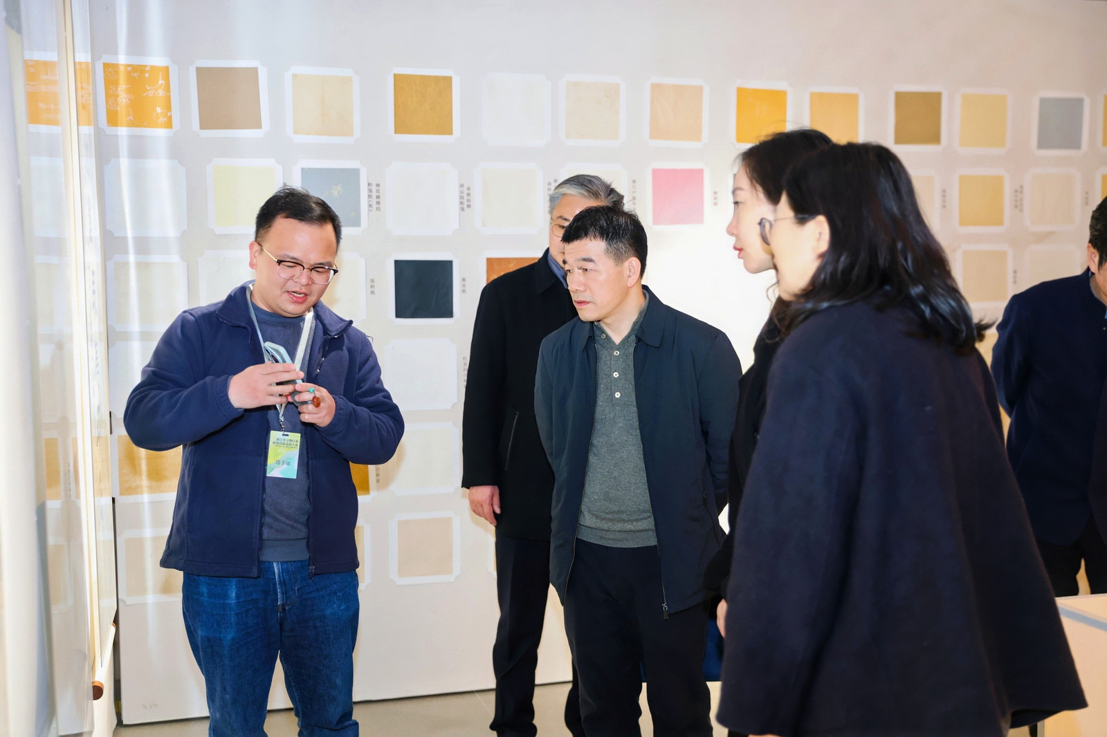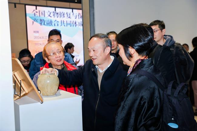 在大会的间歇,与会嘉宾参观了位于新大楼美术馆的“艺起传承——手工艺学院文物修复与保护专业教学成果展”。展览分为序厅、教学文献手稿区、书画古籍修复展示区、古陶瓷修复展示区、新设古建筑与壁画方向展示区以及教学影像与结语区六大板块,全面展示了我校在文物修复与保护教育方面的深厚底蕴和丰硕成果。