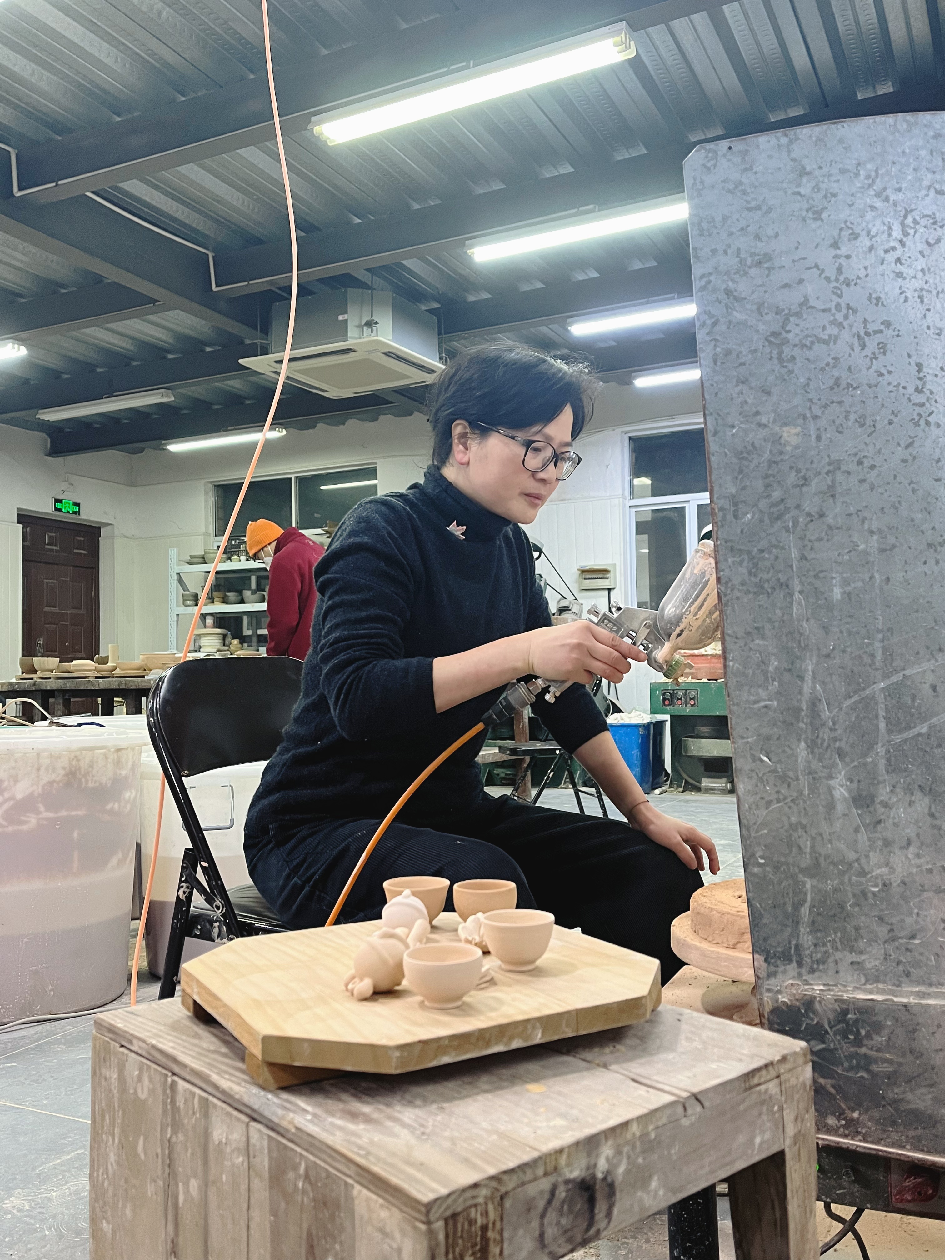 创作理念:这把宝瓶的创作最开始是因为一款新的泥料的烧成。出来的效果一下就让我联想到了以前外婆家门口的一棵古树。确定好主题后,在细节上,添加了很多长的线条。我认为长线条是有流动的,有力量的,就好像虽为枯木也可逢春。在技法上运用了手捏,拍泥片还有粉引。手捏的技法会让整个壶型状态更加质朴和放松。传统的紫砂壶拍泥片则能让其在实用性功能性上有好的把控。