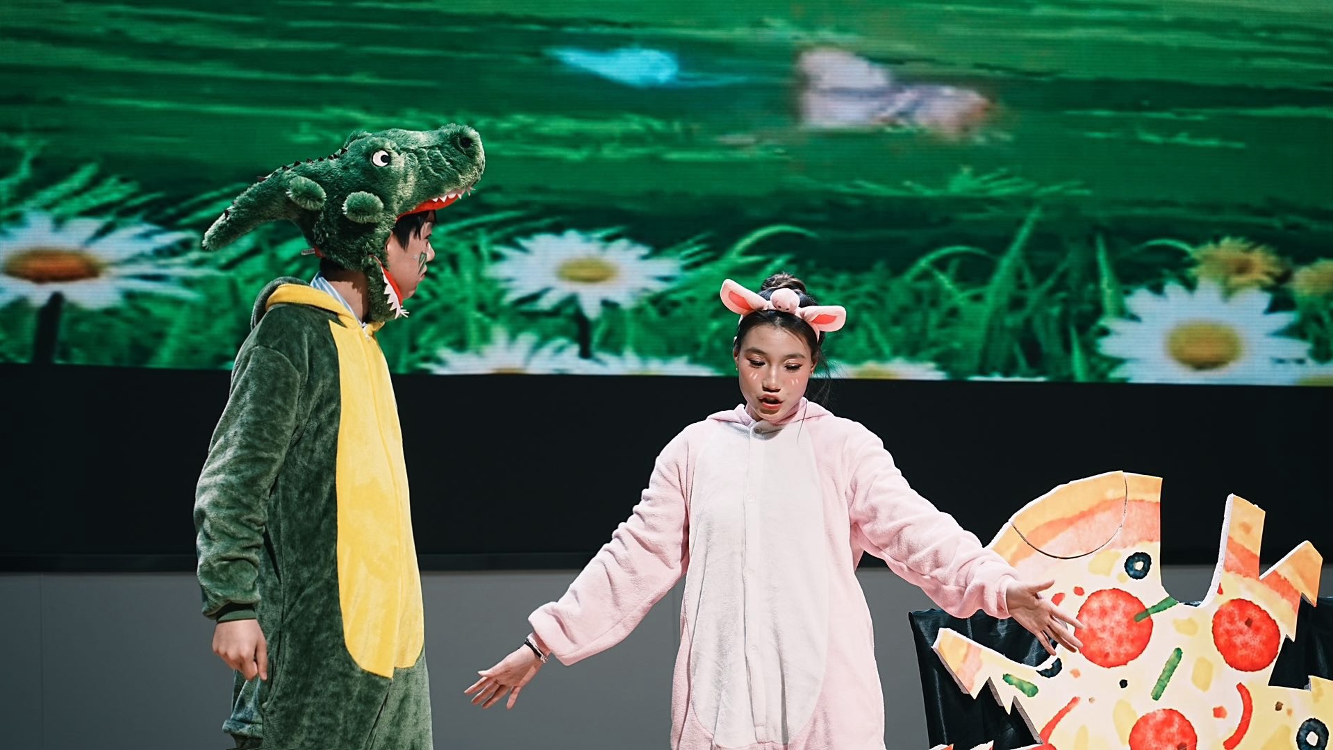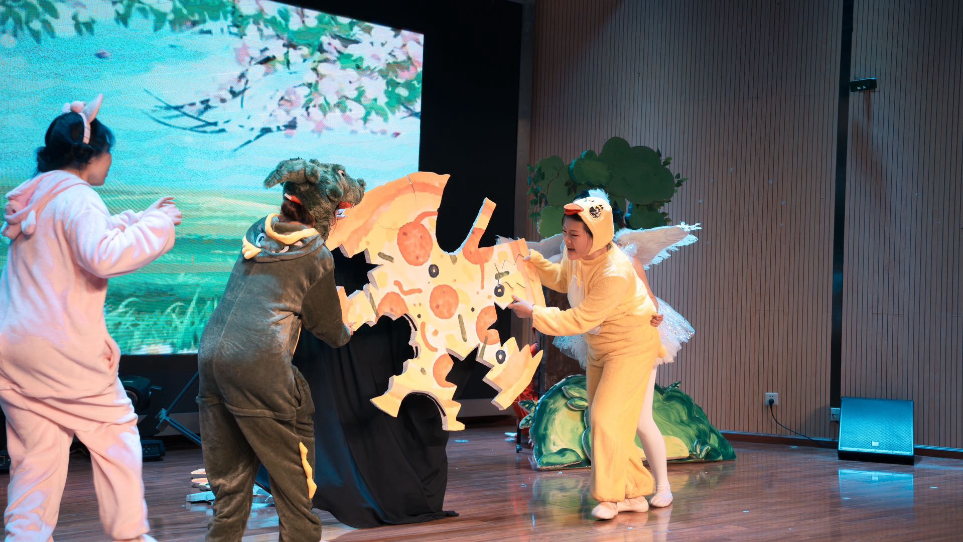 短短一个月的准备时间里,学生们根据自身特长自主组成演员组和道具组,并同步分设AB组,确保每一场演出都有备选方案,能够完美呈现。演员组由王皆慧老师全程指导,道具组由申玉洁老师陪同支持。从剧本编创、排练准备到舞台表演,全流程均由学前教育专业学生们合作完成。舞台上优美可爱、设计巧妙的道具布景以及精致形象的妆造,也都出自道具团队学生们的巧手。