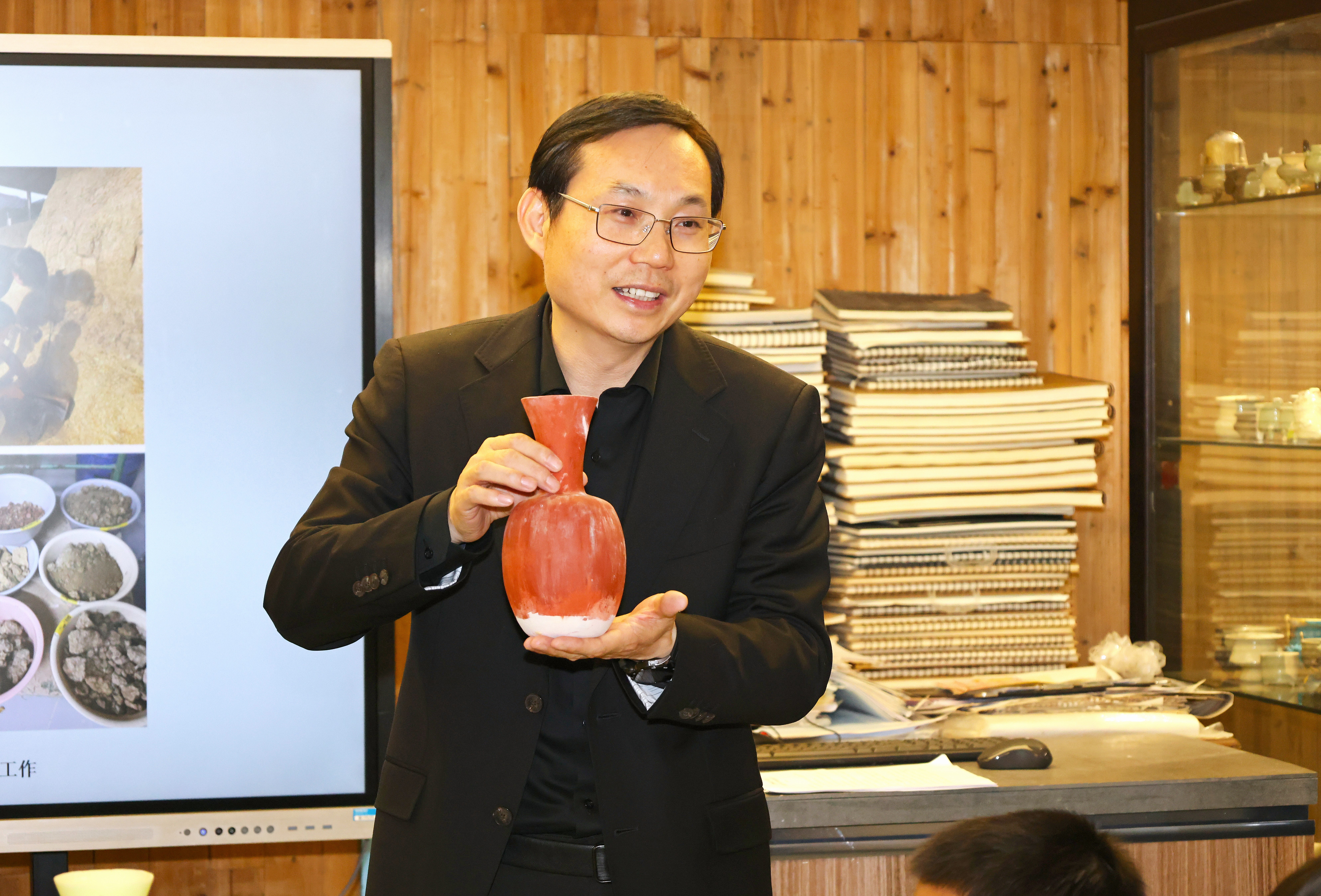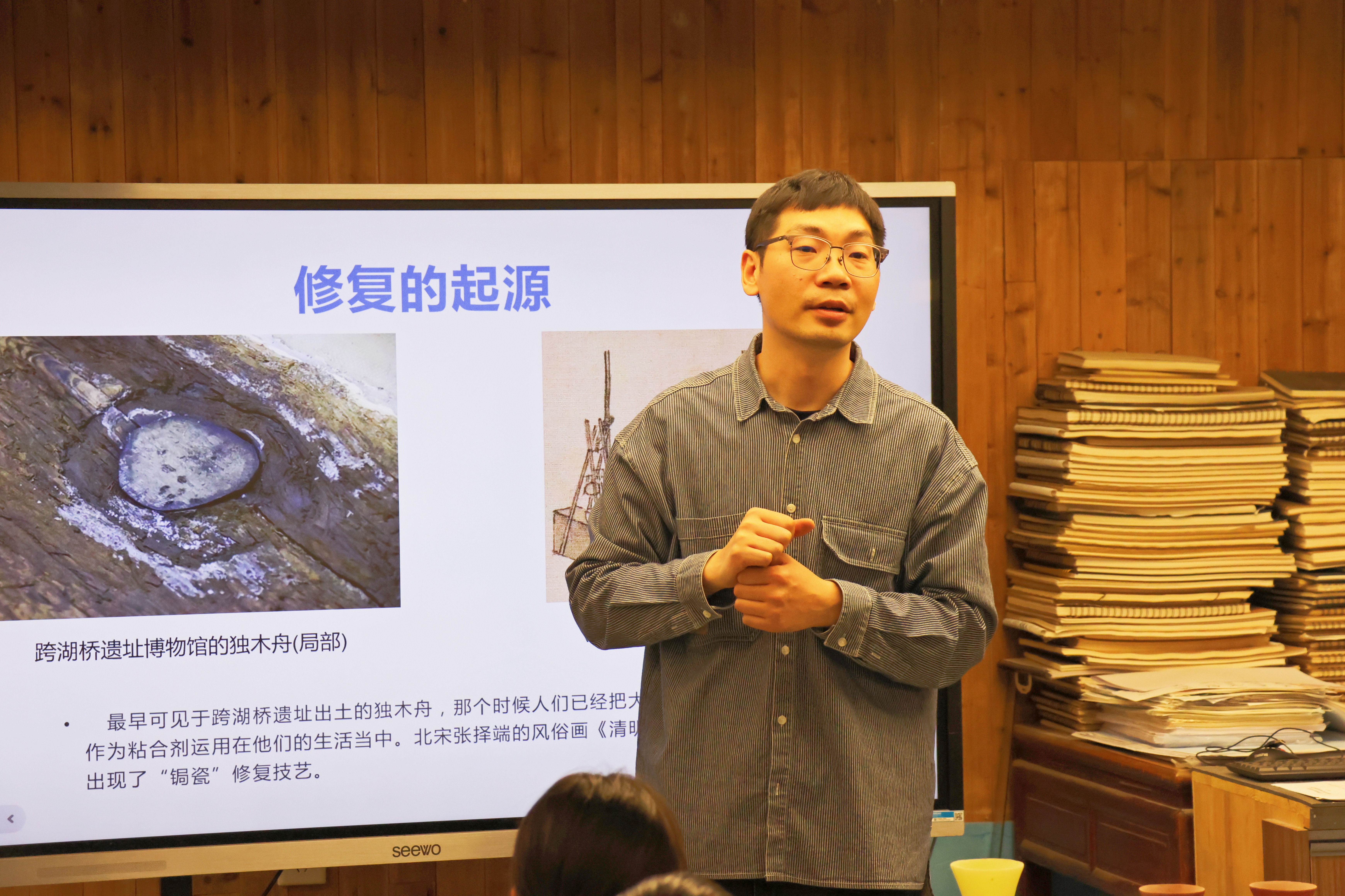 谈及文物保护的重要性,施俊天结合大型纪录片《我在故宫修文物》,详细讲述了文物修复的目的意义、原则、专业类别和主要艺术流程,并简要介绍了浙艺手工艺学院文物修复与保护专业建设情况。