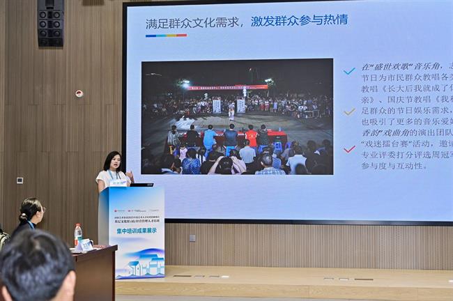 ◆石薇学员展示四川安州群文案例,呈现文化空间焕新成果。现场气氛热烈,学员互评交流碰撞出基层文化发展的新思路。