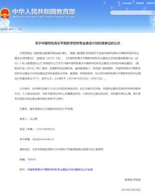 入选中国特色高水平高职学校和专业建设计划拟建单位