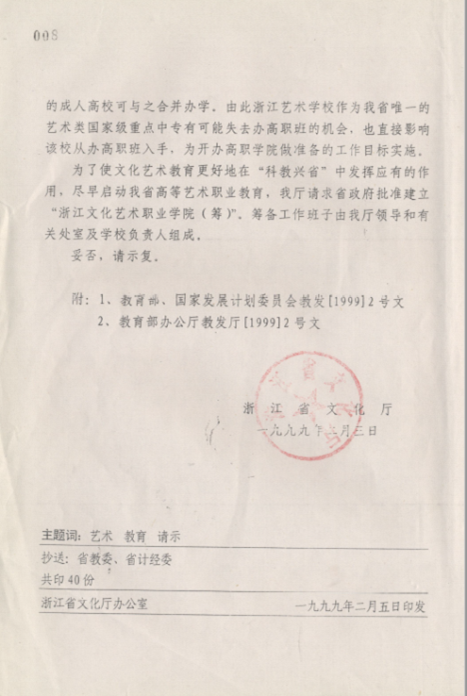 关于请求批准建立浙江文化艺术职业学院(筹)请示