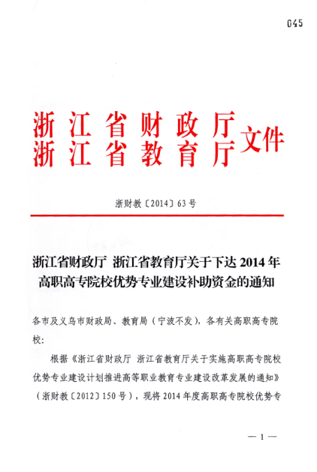 浙江省财政厅 浙江省教育厅关于发布2014年高职高专院校优势专业建设补助资金的通知