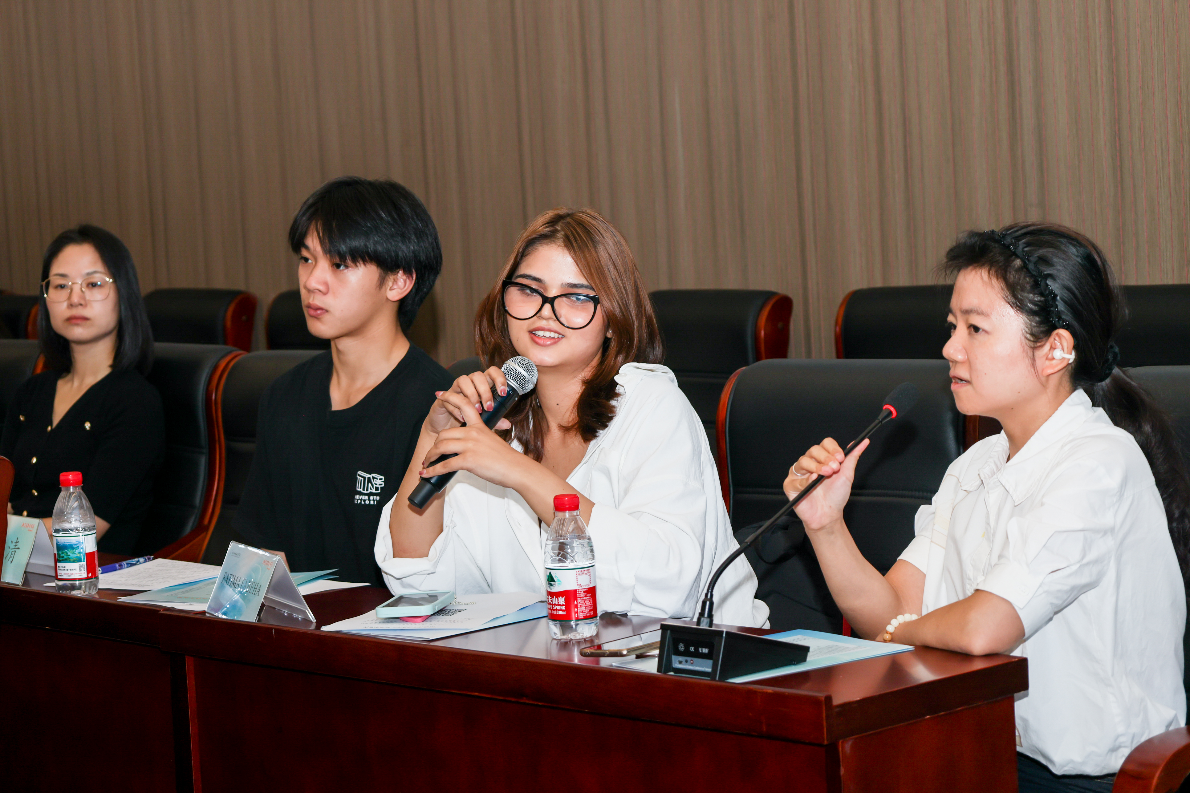 在互动环节,来自戏曲、音乐、舞蹈、设计等学院的新生代表,与来自印尼、巴基斯坦的国际留学生共聚一堂。他们踊跃发言,围绕专业学习与生涯规划等话题深入交流,并就“如何备考专升本”、“如何将理论与艺术实践相结合”以及“如何参与校园实践项目”等实际问题,向师长们现场请教。此次交流有效地扫除了新生们的迷茫,帮助他们打通了初入大学的第一关,现场收效颇丰。