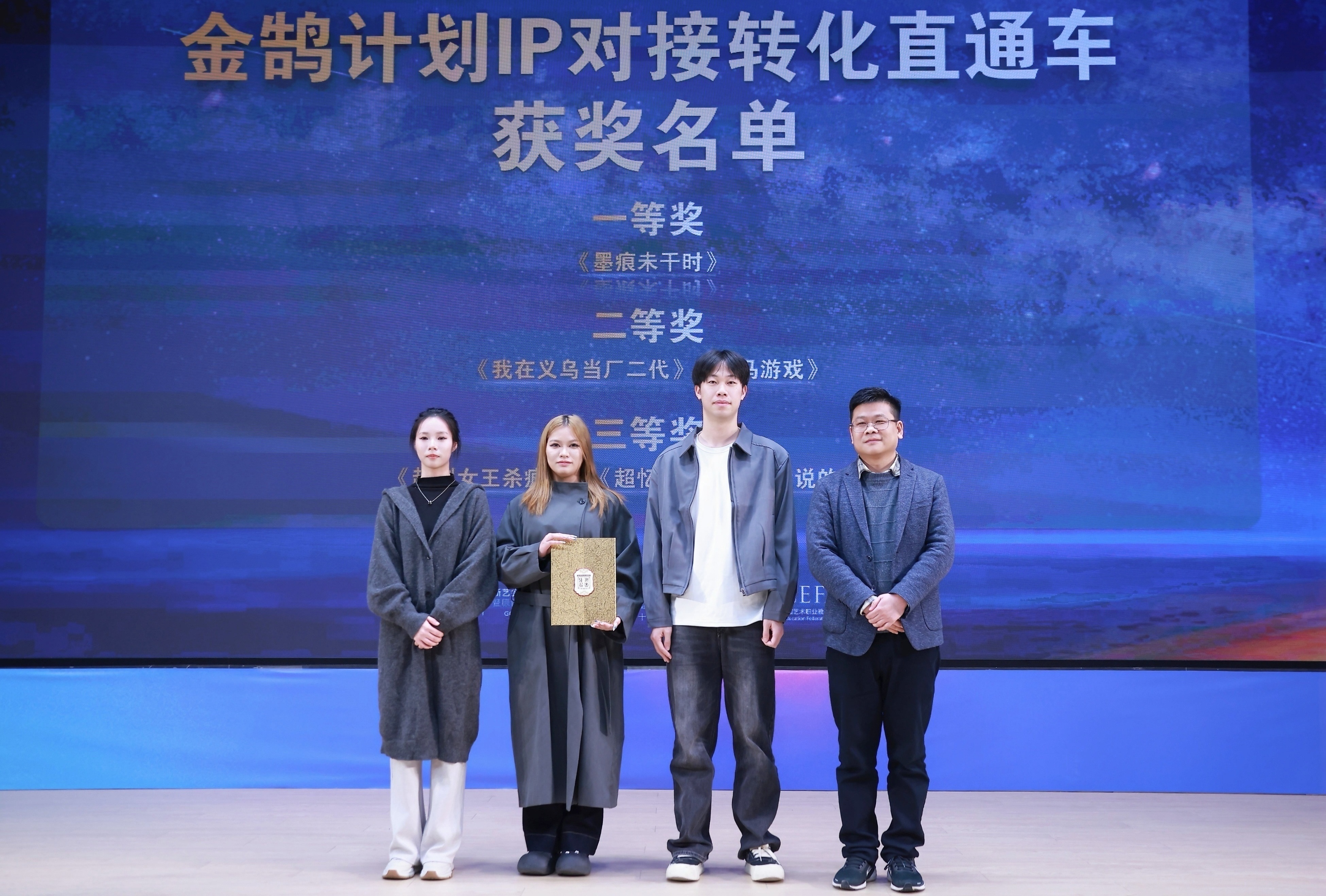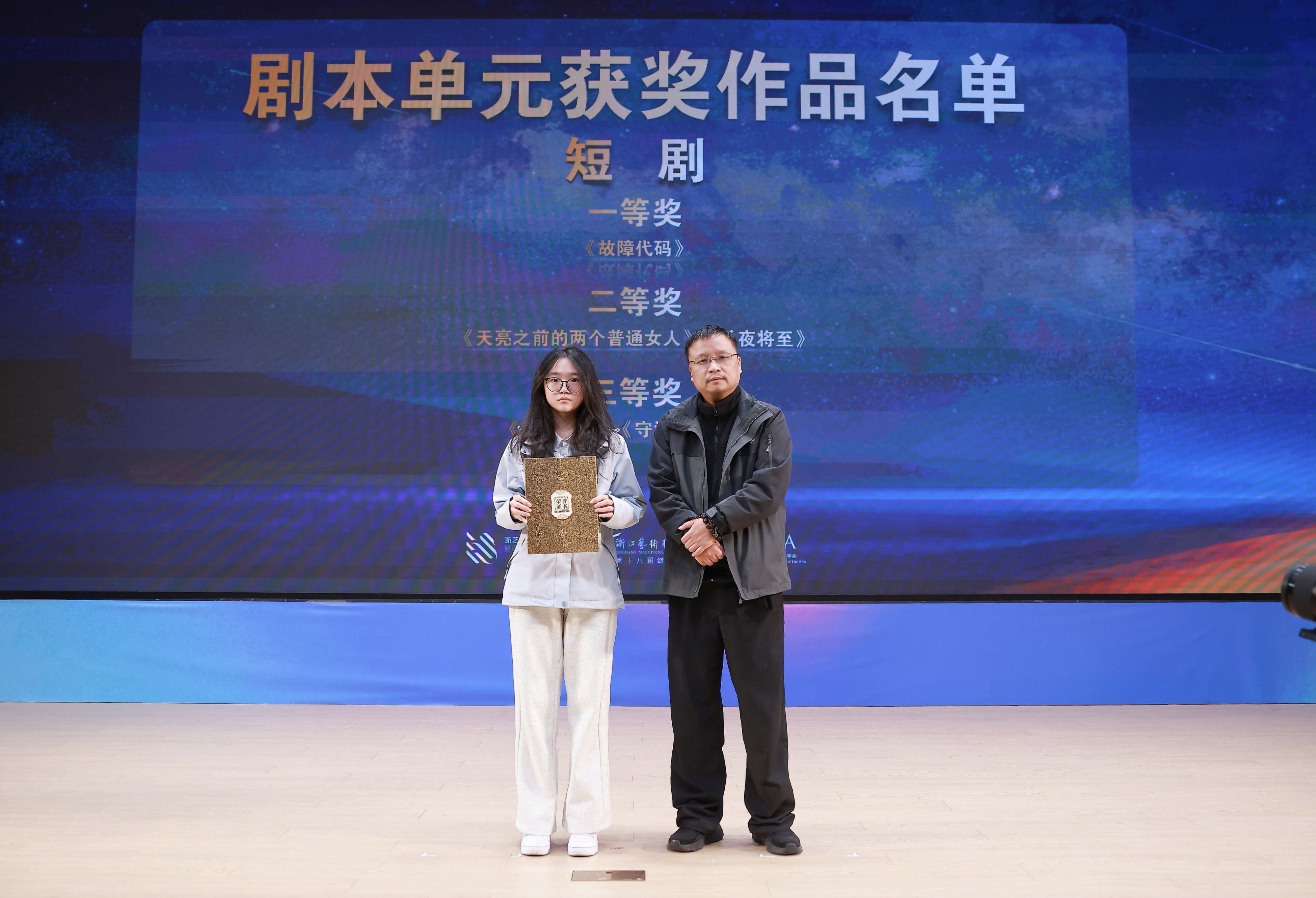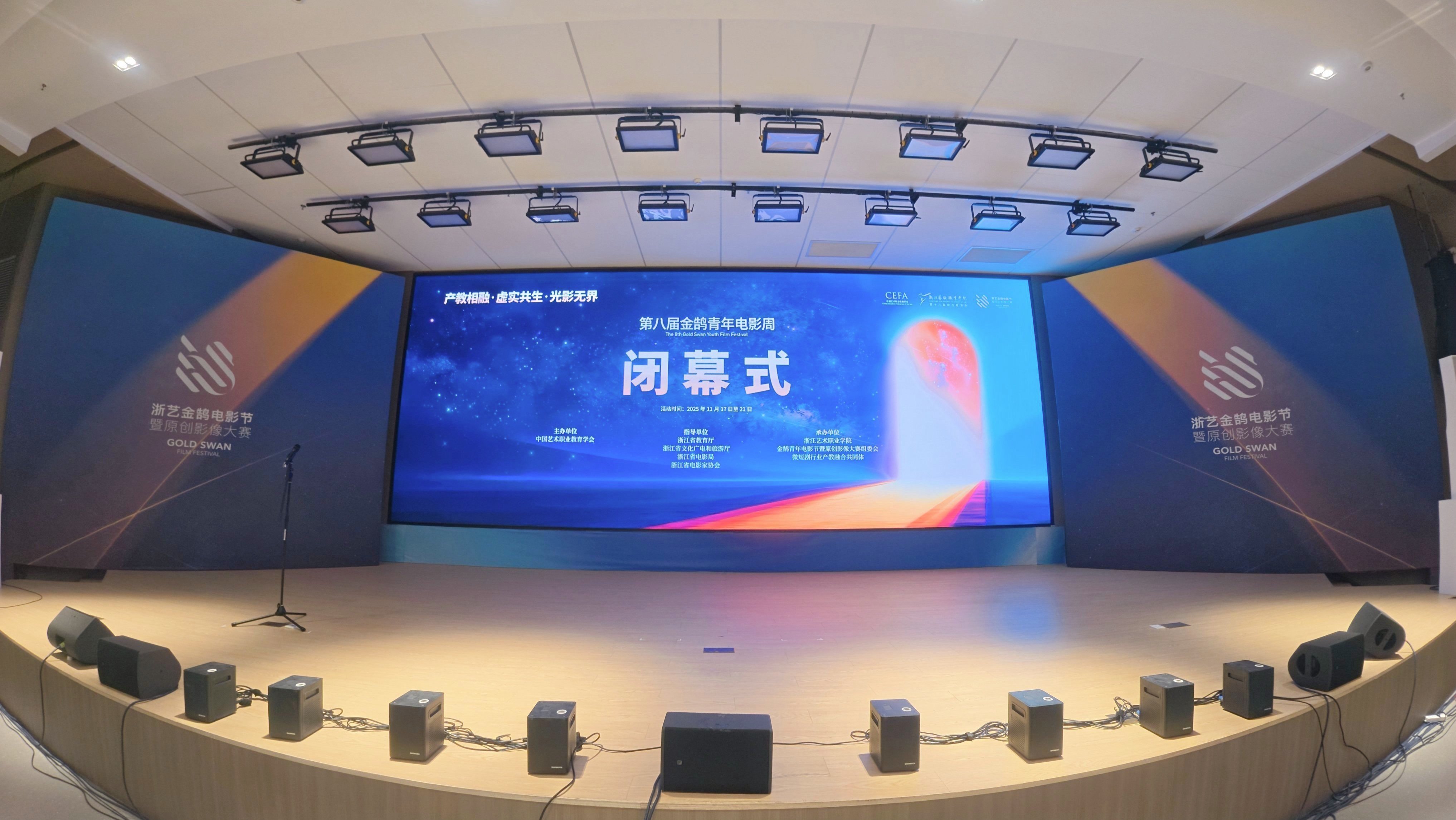 11月21日晚,由浙江省教育厅、浙江省文化广电和旅游厅、浙江省电影局、浙江省电影家协会指导,中国艺术职业教育学会主办,浙江艺术职业学院、金鹄青年电影周暨原创影像大赛组委会、微短剧行业产教融合共同体联合承办的第八届金鹄青年电影周暨原创影像大赛,在浙江艺术职业学院落幕。