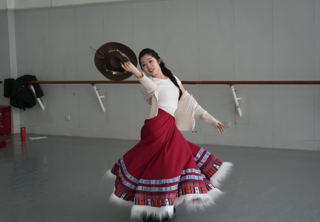 舞蹈考试重点考察考生的形体、软开度、基本功、剧目表演、即兴舞蹈能力。考场上,考生身姿优美,流畅的动作里展现出日夜打磨的扎实功底。