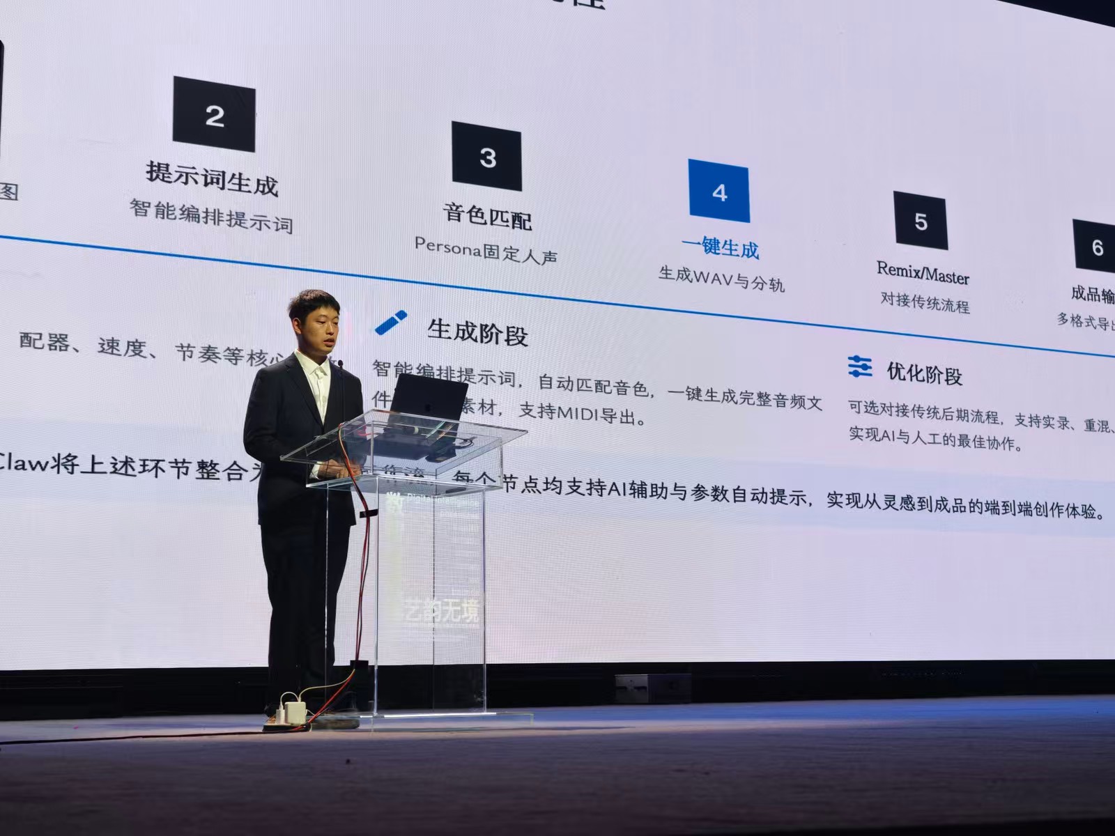 江腾皓则以《openclaw与音频工作流》为题,从声音交互与编程逻辑切入,分享了他在数字音频技术与创作流程中的实验探索。他围绕自主研发的openclaw工具,展示了如何通过算法生成、实时交互与模块化设计,重构传统音频工作流的边界。从声音素材的生成逻辑到交互场景的动态适配,江腾皓以技术为切口,为现场观众打开了一个兼具技术深度与艺术想象的声音视域。