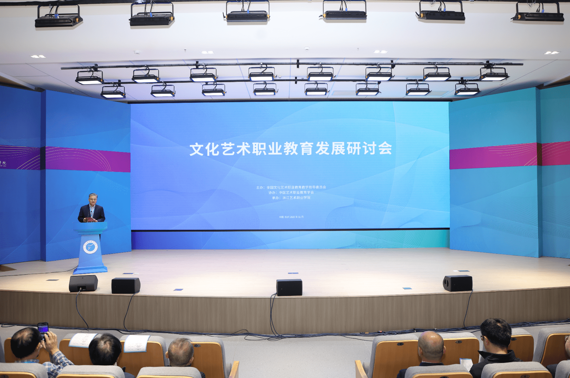 <p style=";text-align: justify;font-family: Calibri;font-size: 14px;white-space: normal"><span style="font-family: 宋体;font-size: 14px"><span style="font-family:Calibri">11</span><span style="font-family:宋体">月</span><span style="font-family:Calibri">17</span><span style="font-family:宋体">日,由浙江省教育厅、浙江省文化广电和旅游厅、浙江省电影局、浙江省电影家协会指导,中国艺术职业教育学会主办,浙江艺术职业学院、金鹄青年电影周暨原创影像大赛组委会、微短剧行业产教融合共同体联合承办的第八届金鹄青年电影周,在浙江艺术职业学院开幕。本届电影周以“产教相融·虚实共生·光影无界”为主题,汇聚了全国影视教育界、产业界的专家学者、行业领军人物及青年创作者代表,共同开启一场连接教育与产业、现实与虚拟、创意与技术的青春光影盛会。</span></span></p>