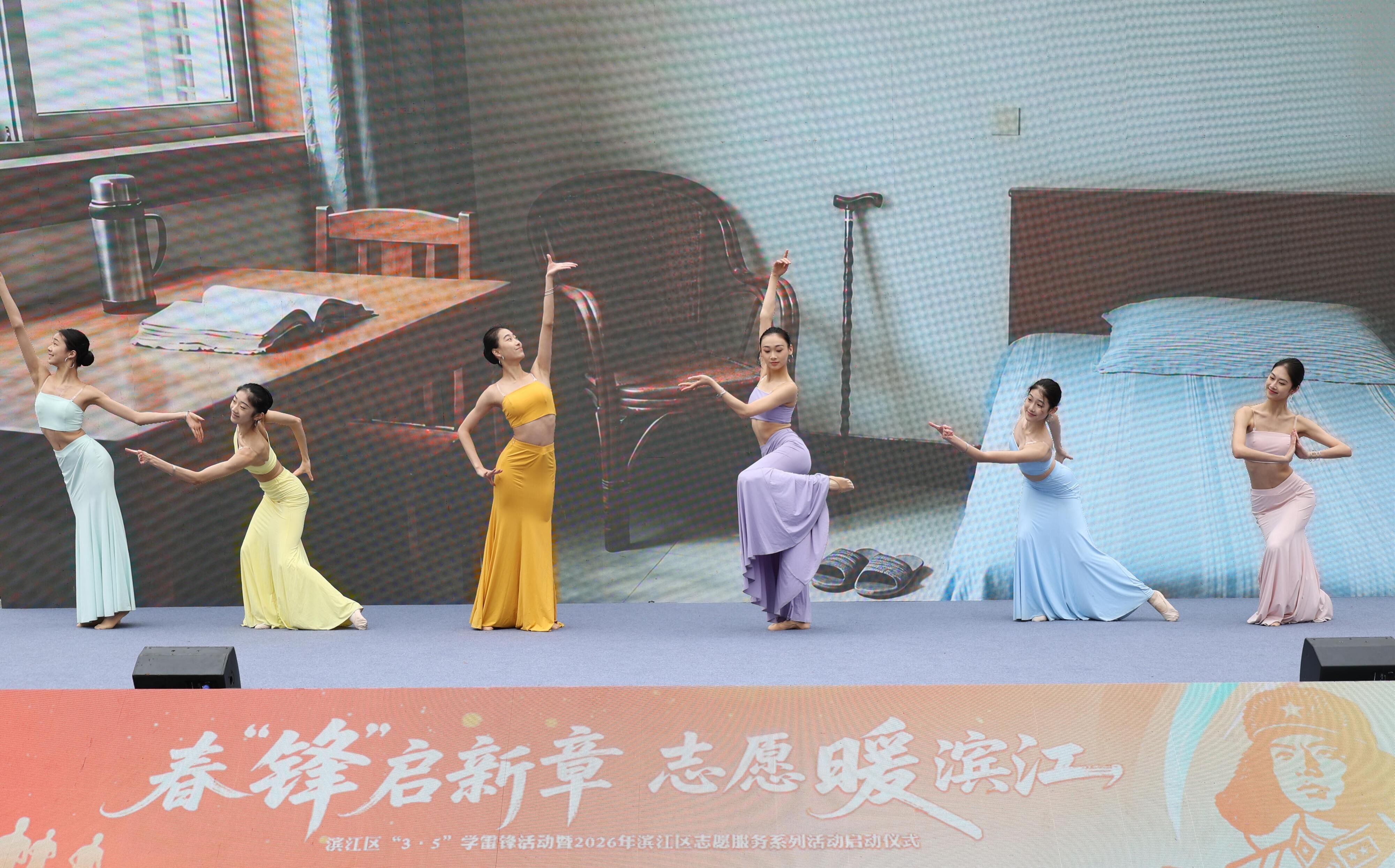 <p style="margin: 0pt 0pt 0.0001pt; text-indent: 21pt; text-align: justify; font-family: Calibri; font-size: 10.5pt;" align="justify"><span style="font-family: simsun, serif; font-size: 16px;">在刚刚举行的“3·5”学雷锋日主题活动暨2026年滨江区志愿服务系列活动启动仪式上,“‘一个人的舞台’文艺赋美志愿服务项目”作为滨江区优秀志愿服务项目成果参与现场展示。舞蹈学院师生携校庆“同款”作品再次登上社区舞台,用专业的演出和真挚的笑容,赢得现场阵阵掌声。这不仅是对志愿服务师生的充分肯定,更是对“艺术为人人”理念的高度礼赞。</span></p>