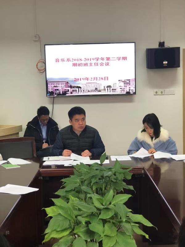 学生工作无小事,使命担当新一年。2019年2月28日,音乐系在系3101党员之家会议室召开全体班主任会议,集体学习学校班主任队伍建设实施细则,部署新学期学生工作。系党总支专职副书记谢志勇主持会议,全体班主任、辅导员参加。