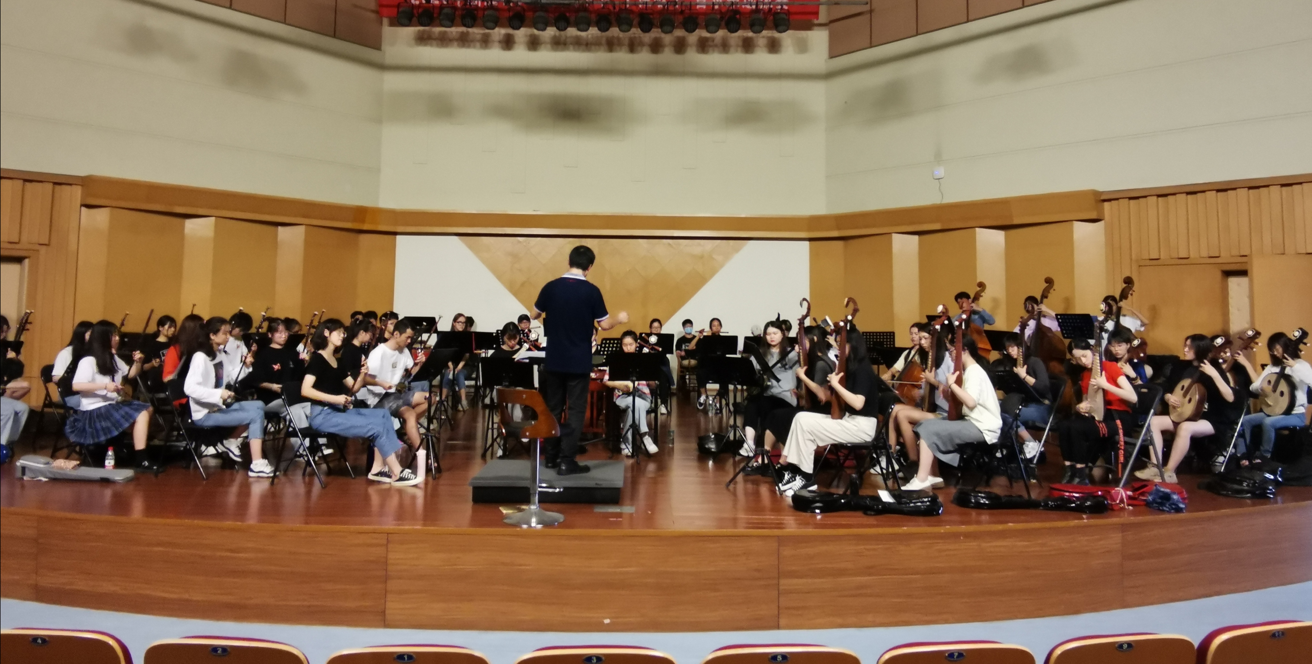 小课琴房,琴声、歌声,声声入耳。安静了两个月的琴房,迎来昔日师生,好不热闹。排练厅里,器乐合奏、人声合唱,交相辉映,延续着开学前大艺节备赛师生的排练热情和专业执着。
