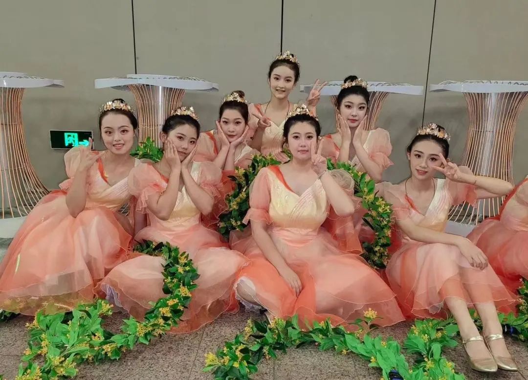 本次开幕式由金桂为主要元素,通过科技手段打造了一个爱的舞台。而我院32位同学们有幸参与这次连接亚洲的盛大演出,在包括第一篇章《心相约》、第三篇章《梦闪耀》和主题曲《我的深情为你守候》等节目中扮演金桂少女。”