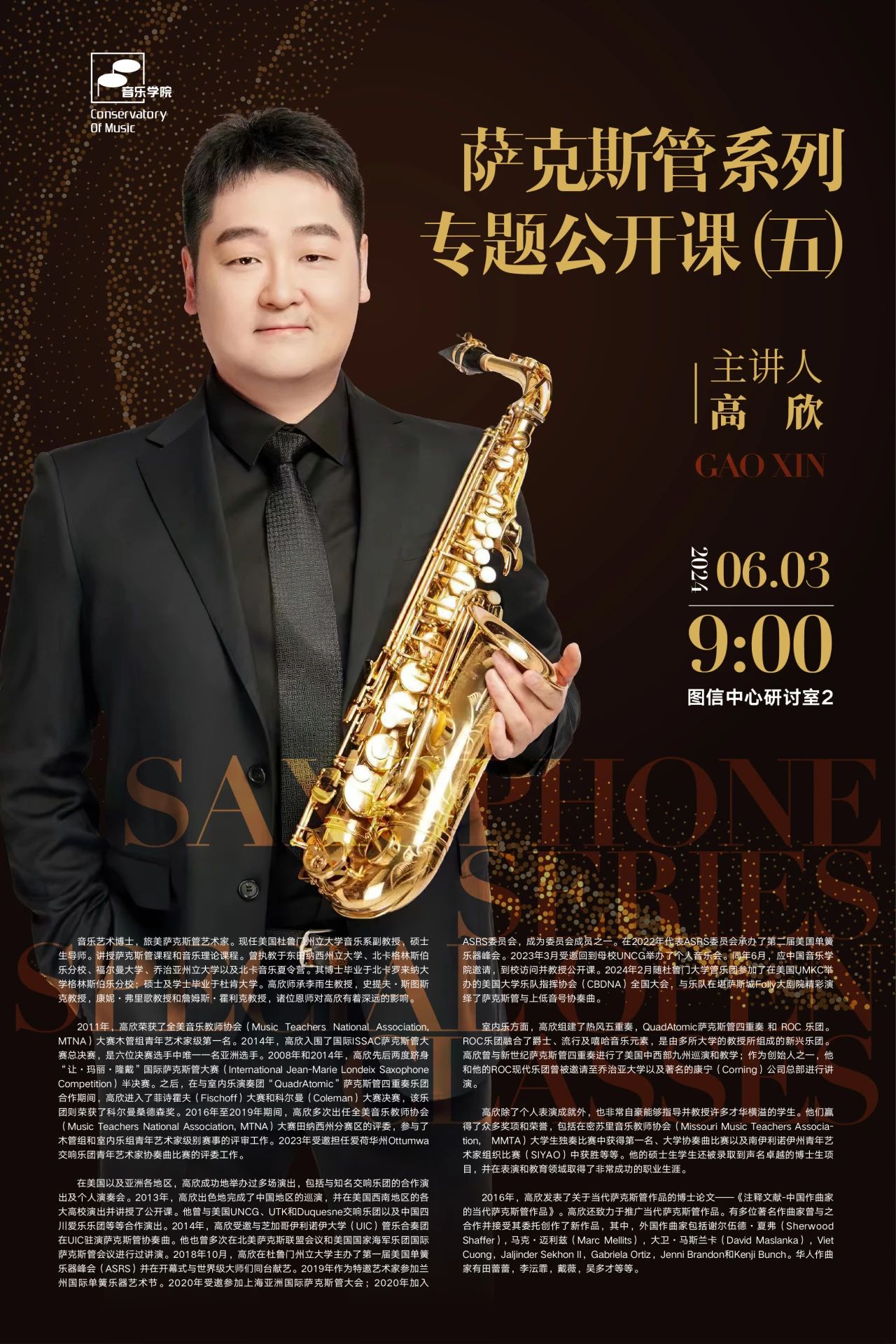 讲座预告|萨克斯管系列专题公开课(五)