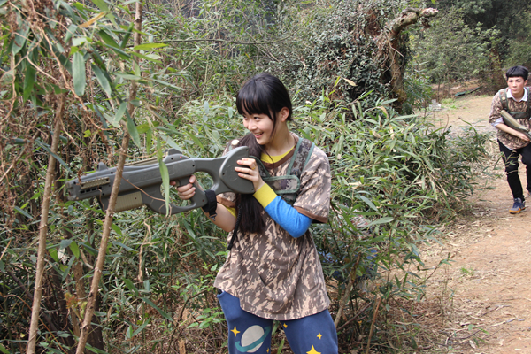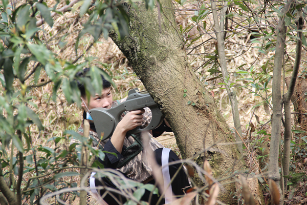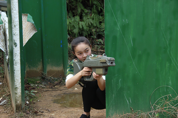 cs训练项目开始前,我们被分成“蓝队”和“红队”。教练教我们戴好装备,对cs规则进行讲解,并对战术、上子弹、瞄准、射击等进行指导。大家拿着枪跃跃欲试,仿佛是真正的战士。刚开始时,大家都还不太熟悉作战,但随着比赛的推进,大家都越来越进入状态,一时间,好像空气里都弥漫着硝烟的味道。在这样的氛围中,各自队伍的队员更加紧密团结、共同作战,增强了同学们之间的协作感。