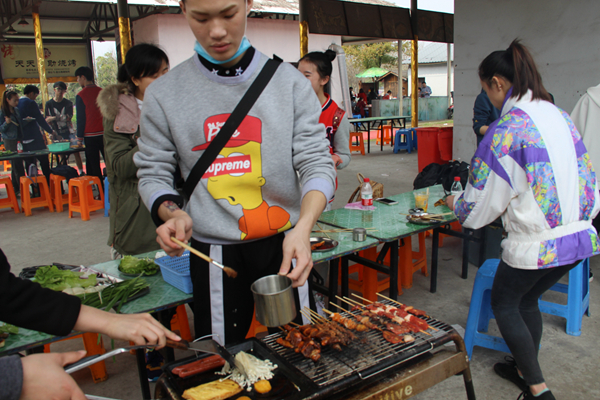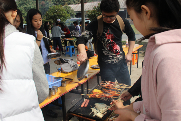 午饭时间,开启自助烧烤的美好时光。同学们主动承担起主厨任务,虽然手艺各异,但大家都十分享受带着糊味、焦味的食物,体会分享和互相帮助的意义。