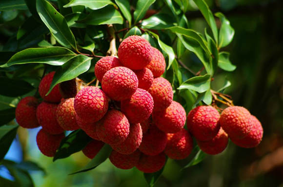 福建并非岭南,但是却给了我们那种诗境。当我们驱车进入福建,就时不时地看到公园里、马路旁,鲜红的、紫红的荔枝成丛成束地掩映在树枝上,看着诱人,赏心悦目。我们一行大多是第一次看到长在树上的活的荔枝的,兴奋之情溢于言表,每每发现一丛密集的荔枝便大呼小叫起来,引得同行者争往观之拍照。到了一处公园,里面荔枝树不少,有几棵树长在水边,结满荔枝的树枝垂垂地挂了下来,芳香色味诱人,几位同伴禁不住过去抚着荔枝拍起照来,爱煞人的一幅模样。那时就在想,要是能尝到这鲜美的荔枝该有多好。
