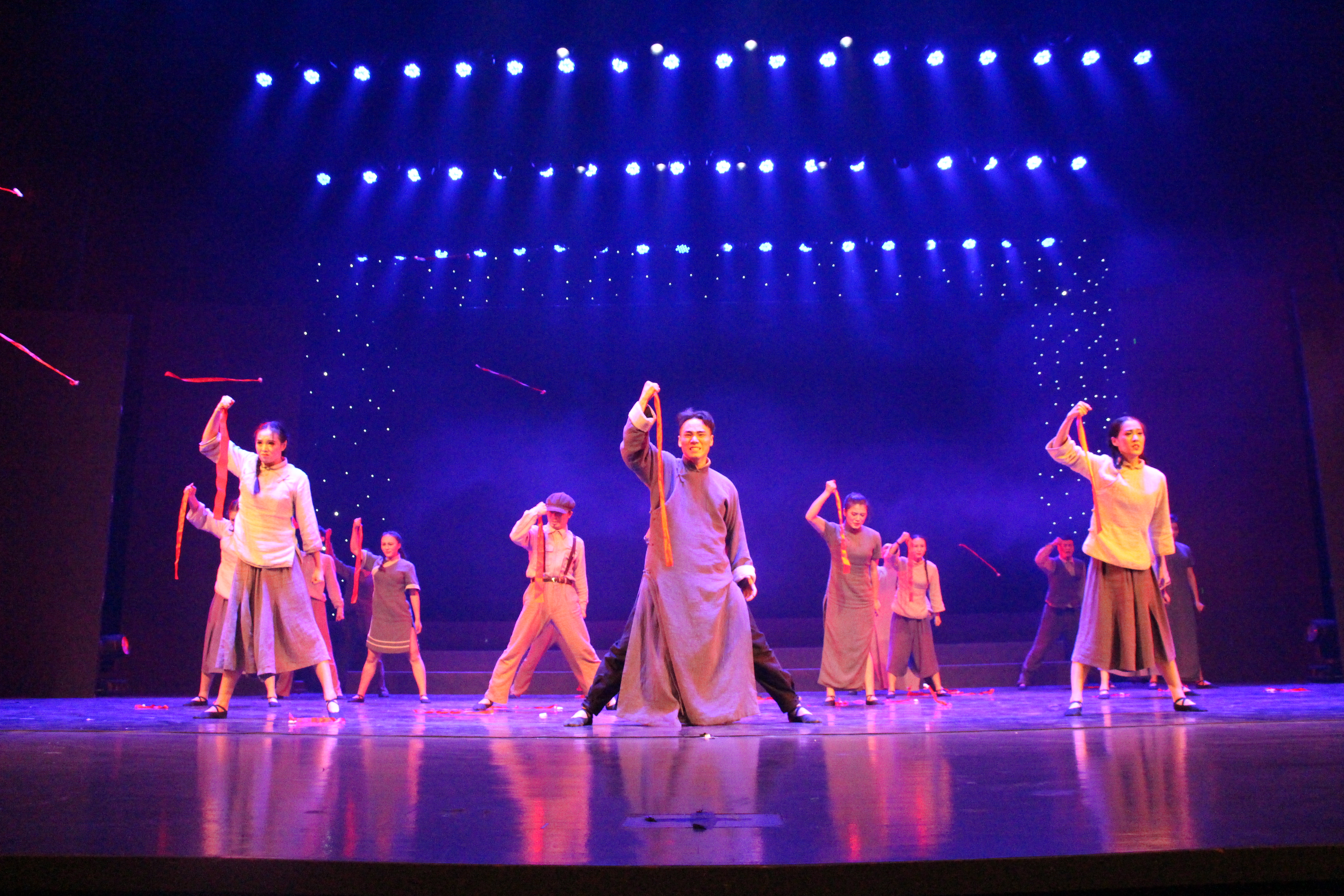 当被问到《红船》这场舞蹈传达了一种怎样的信念,李毅源老师阐述了自己的见解:一场《红船》以嘉兴南湖的红船为故事背景,以意象性的动作语言来表达对未来新社会所产生的憧憬;一根红绸化作希望、信仰、生命,它是星星之火,可以燎原,同时也象征了伟大的红色主义事业。杨博文补充到:《红船》的舞蹈意义更具体的体现为一种精神力量的凝聚与爆发,传达给观众一种精神理念,给人以深刻的启发和见解;在整场舞蹈中,每一根红绸代表着国旗的一针一线,而满场的红绸聚集在一起的时候,代表了革命先辈团结的精神品质。