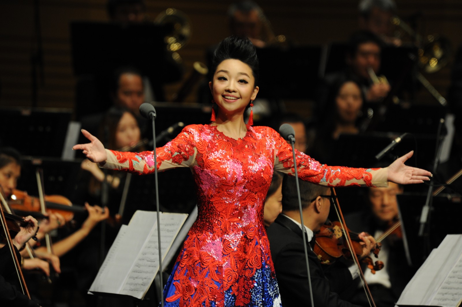 2016年夏天,我在北京保利剧院举办了《嫣然绽放——邱嫣独唱音乐会》,那是我人生中十分重要的一场演出,是我学习声乐专业十五年来的一次汇报总结。那天,我邀请了我的声乐启蒙老师、也是我在母校就读时的专业老师赵俊和她的先生、著名作曲家金奇教授来到现场,共同见证了这场有着特殊意义的音乐会。到场的亲朋好友中,还有许多正在北京学习的浙艺老师和学弟学妹们。感谢他们对我的支持!近几年我有幸参与了海军成立70周年庆典活动、上合组织国际管乐节、上海之春国际军乐节、南昌军乐节以及随团赴圣彼得堡参加俄罗斯海军成立322周年系列庆典活动等重大演出任务。